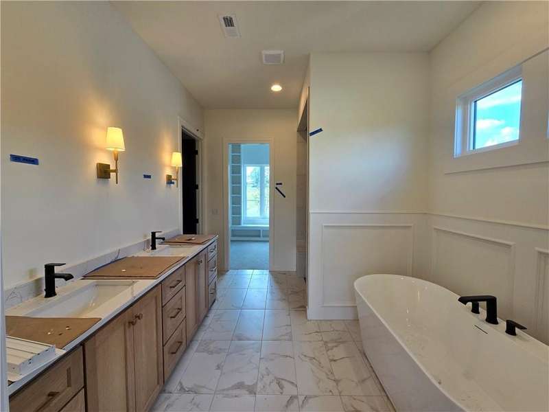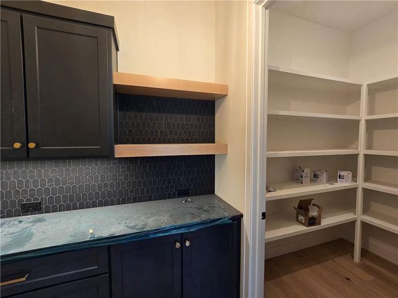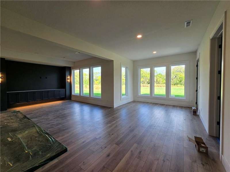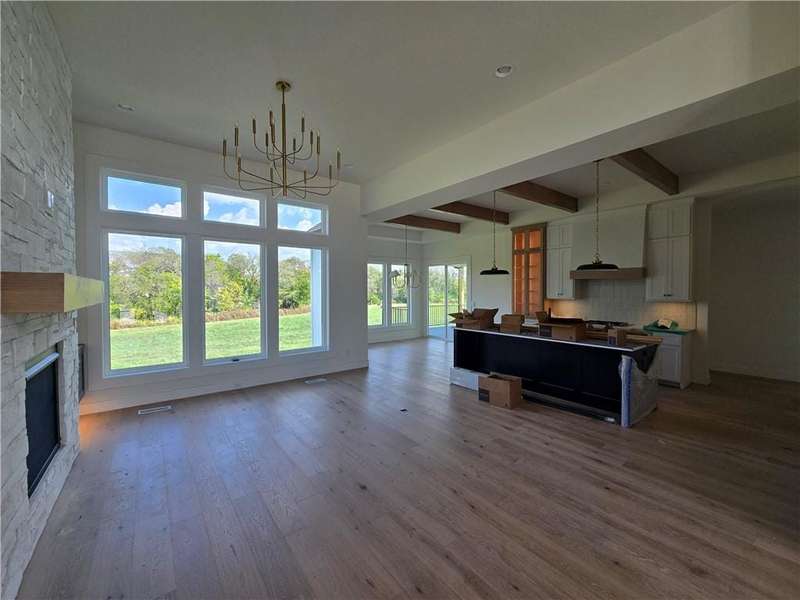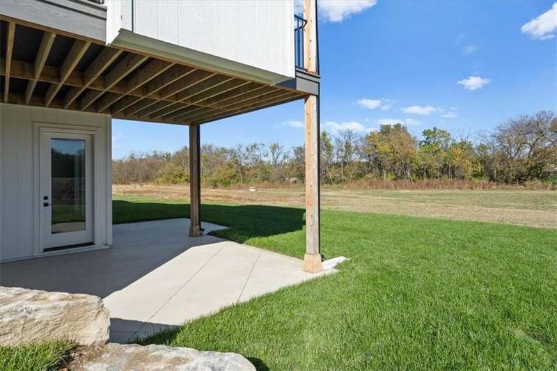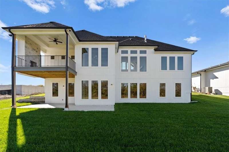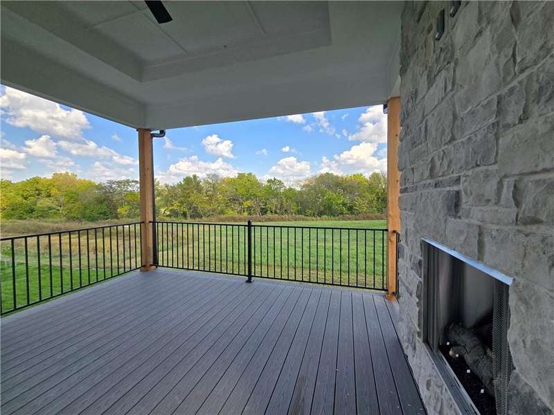 Stunning Reverse 1.5 Story by JFE Construction in The Retreat at Hook Farms! This home welcomes you with a dramatic stone and glass entry that sets the tone for the modern elegance inside. Backing to serene greenspace, it offers both privacy and views. The oversized covered deck is perfect for entertaining or relaxing outdoors, with a spacious lower-level patio extending your living space. The open kitchen features an oversized island that comfortably seats guests and provides abundant prep space. Sleek cabinetry, walk-in pantry, and modern finishes make it the perfect centerpiece for entertaining and everyday living.