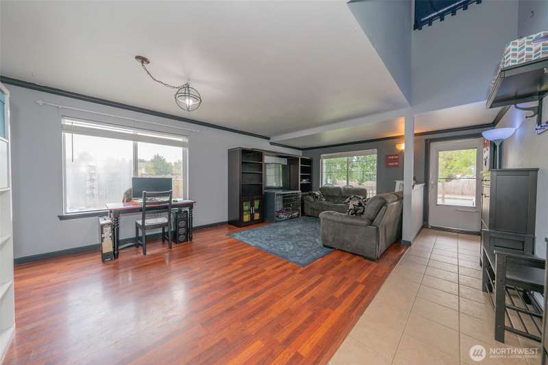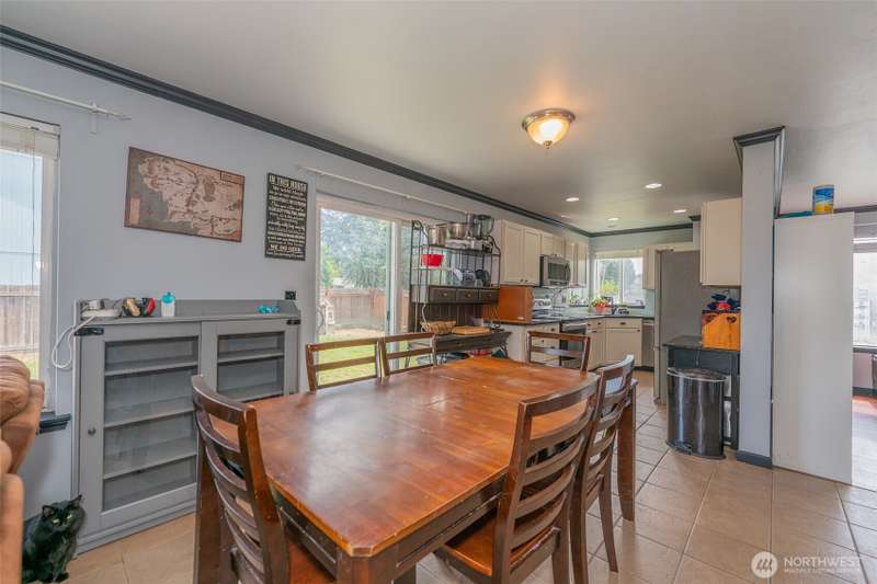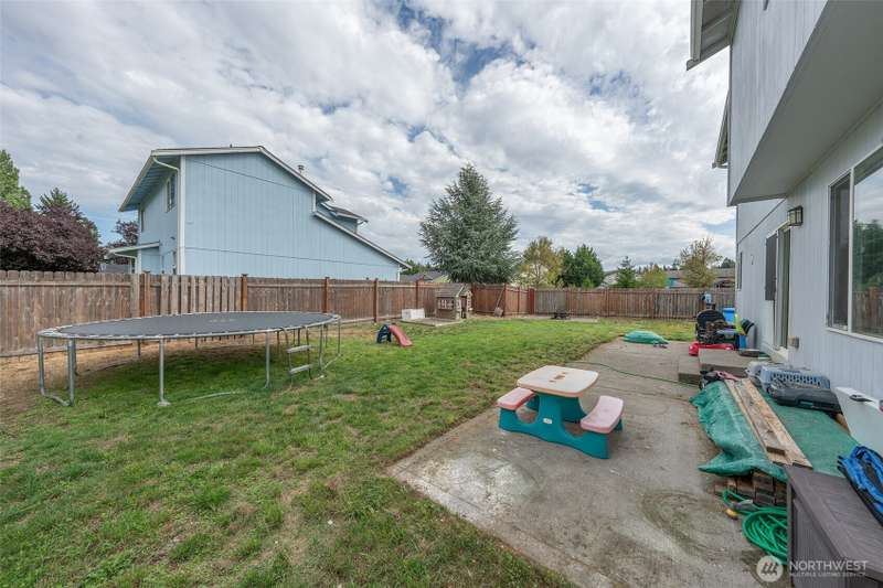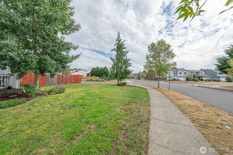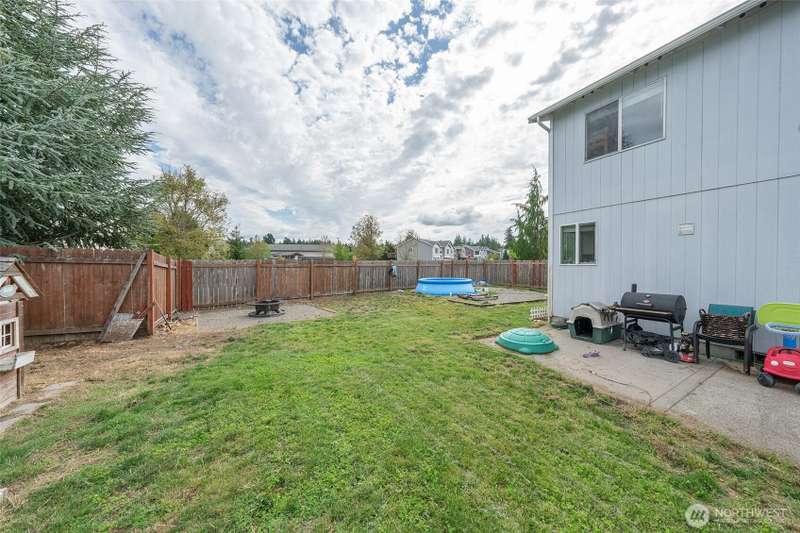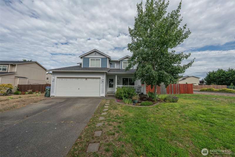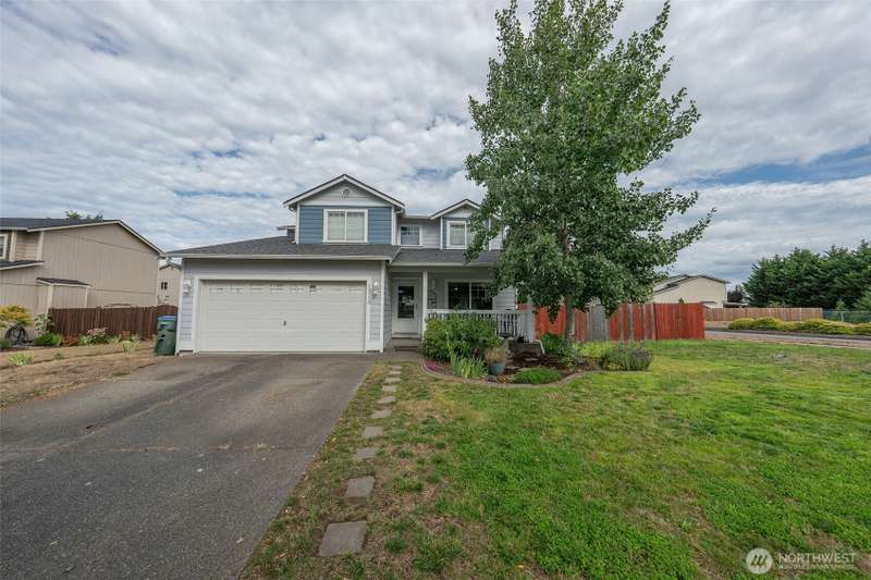 Come see this beautiful 4 bedroom, 2.5 bath, 1,831 SQFT home on a corner lot near Ridgeline Middle School today! There is a huge backyard with room to play! The kitchen features stainless appliances and a corner window sink. It has a convenient layout with a Family Room, Dining Room, and a large Living Room. The Primary Bedroom Suite includes a bathroom with separate tub and shower, double sink vanity, and a walk-in closet! This home is conveniently located near Ridgeline Middle School, with quick access to all of Yelm and a reasonable commute to JBLM. Come see this great House today!