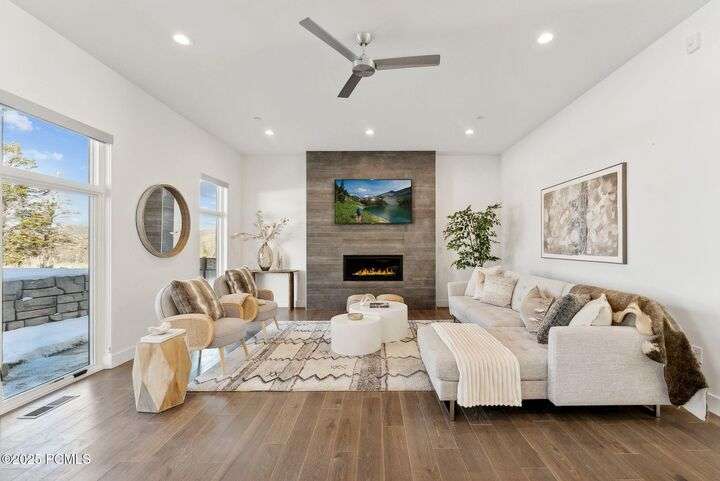 Year Long Tenants just moved in - Please do not disturb the tenants! Imagine living in Discovery Ridge almost halfway between Salt Lake City and Park City in a luxury mountain modern home. Only about 15 minutes to drive to downtown SLC and PC in both directions. This home is close to the freeway for an easy commute to work or a short 30-minute drive to the brand-new SLC International airport. This beautiful home has 360-degree views of Summit Park mountain bike and hiking trails, Summit County Open Space hiking and biking trails (literally out of your front door!), Woodward Resort, and Jeremy Ranch Country Club golf holes. Located in one of the best school districts in the state, this 3 bedroom (plus 1 flex room), 3.5 bathroom home is huge! And it is priced to move. It is 4,714 SF total. The home boasts 3,600 SF of amazing family space, a large primary suite with its own private patio and 2 other large ensuite bedrooms upstairs, with one smaller flex office/bedroom space on the main level. It has a massive oversized garage that can fit two full-size trucks, tons of toys, and is almost 25ft tall. But this home also has so much room to grow into it. At this $/SF, you could come in and finish the 1,124 SF basement and the 300 SF garage storage room and have instant value and equity growth in the property to sell it for a profit or create two additional bedrooms and an extra downstairs living room. The builder of this home and development is ready and willing to provide quotes and build out the basement and garage storage room. The main level is the crown jewel of the entire house. The upgraded Sub-Zero appliance package, endless custom cabinets, and a massive, oversized chef's kitchen will make dining and entertaining a delight. The open-concept dining and living room area flows and spills out into a large, covered deck patio for your hot tub and BBQ enjoyment.