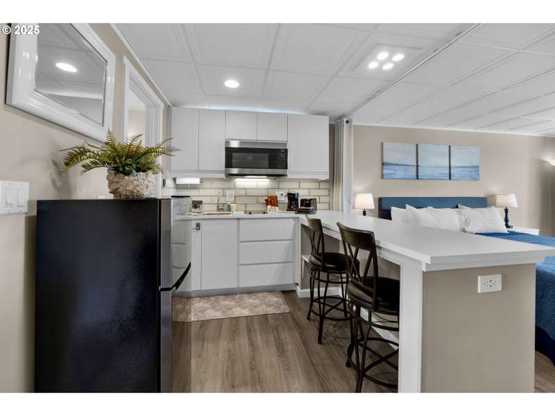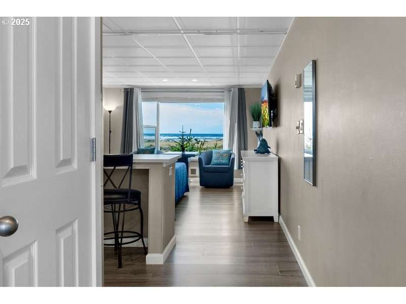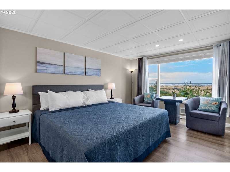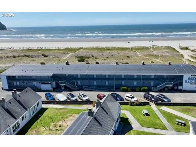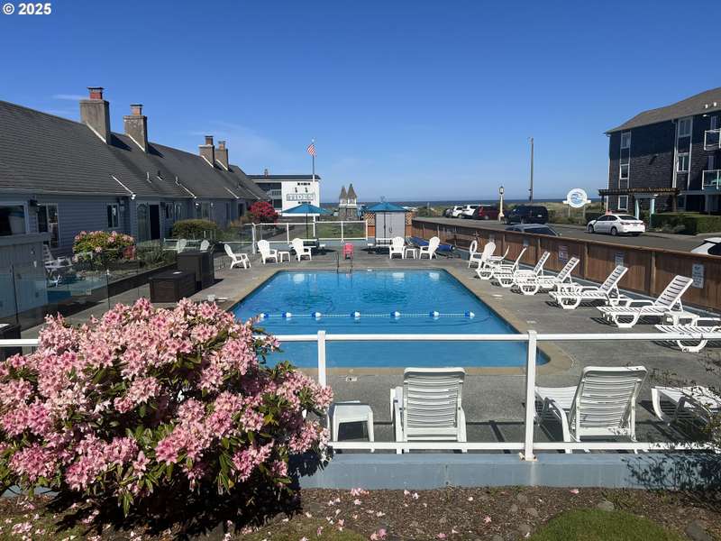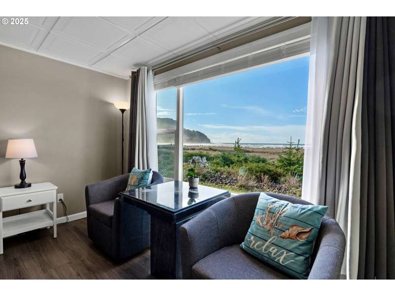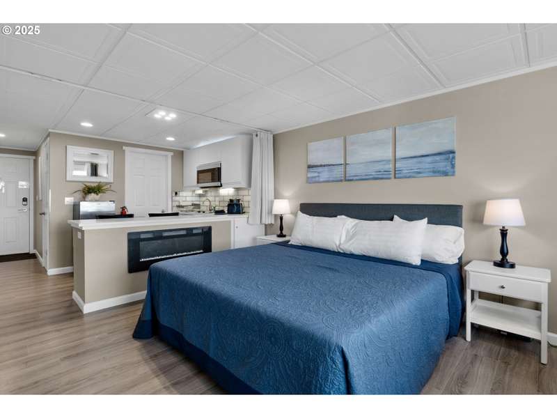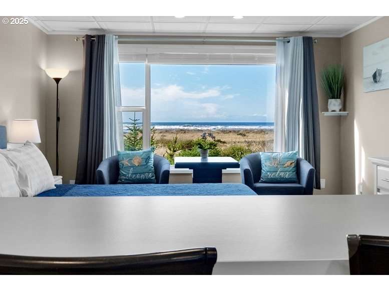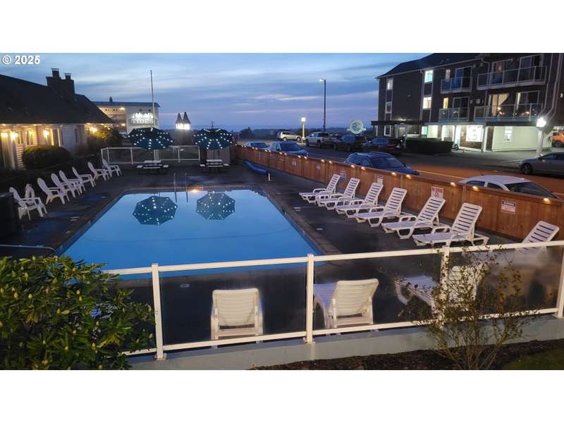 Charming Beachfront TIDES BY THE SEA studio Condo in Seaside Oregon. Discover the ultimate coastal retreat with this ground-level beachfront studio, offering stunning views of the Pacific Ocean right outside your door. This fully remodeled, sleek, modern space features an open floor plan with a large picture window that floods the room with natural light and showcases breathtaking ocean views. Studio condo includes a cozy king-sized bed, an electric fireplace for added warmth and ambiance, a spacious living area with a large-screen smart TV, a well equipped kitchenette with a countertop dishwasher, eating bar, owners storage, fully furnished and a seasonal pool. Located just steps from the beach, with a golf course down the street and Seaside's historic Promenade a short walk away. This property offers an unbeatable location for both relaxation and adventure. Whether you’re looking for a weekend getaway, a permanent coastal home or a beachfront rental, this studio condo offers the best of North Oregon Coast living. A must see!!