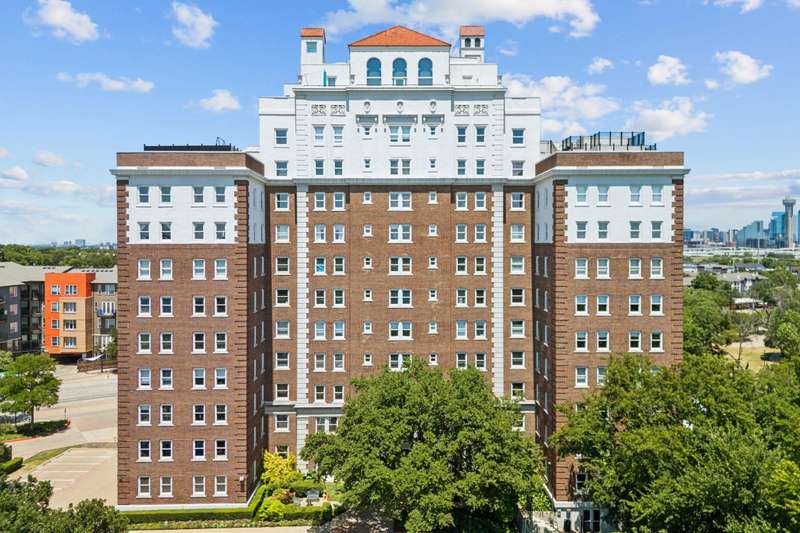 Welcome to historic Lake Cliff Towers, built 1929 era this stunning condominium community beautifully marries old-world charm with modern conveniences. This architectural gem is nestled between serene Founders Park and picturesque Lake Cliff Park, offering a tranquil oasis just minutes from the vibrant energy of Downtown Dallas and the electric Bishop Arts District. The gorgeous lobby offers 24 hour concierge service.This one bedroom, one bathroom loft style condo is located on the 3rd. floor offering sweeping views of downtown Dallas, and the tower's swimming pool. The unit features stained concrete floors, high beamed ceilings, and custom lighting with 925 sq ft of living space. The kitchen features custom cabinetry, lighting with a large glass top bar for entertaining, double-ovens, glass cook top, and microwave oven. The primary bedroom's ensuite bath features a walk in closet, shower, sunken tub, and washer and dryer. Experience the allure of historic living with all the conveniences of contemporary life in this exceptional Lake Cliff Towers condominium. Make it your own and enjoy the perfect blend of charm, location, and lifestyle! Buyer to verify dimensions, HOA information and schools.