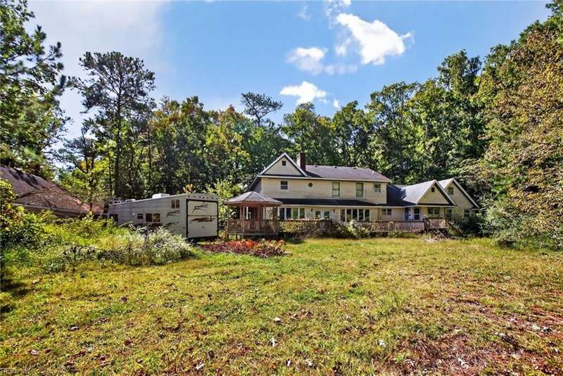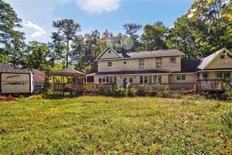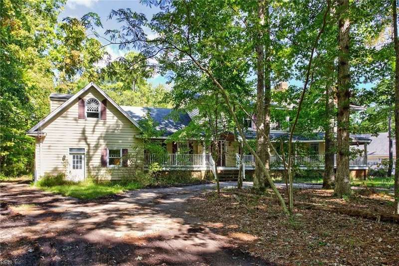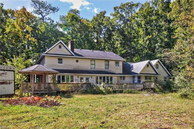 This is your dream opportunity! Unique 4200 sq ft custom home on 4.7 private, waterfront acres waiting for updates & renovations. Wrap around porch & deck w/ gazebo, brick accent walls, step down den & LR, 3 fireplaces, 2 car attached garage plus detached garage & workshop w/6 bays. This is the property that every collector, hobbyist, dog sport enthusiast, gardener or birdwatcher has always wanted. Priced WAY below assessment, the potential for sweat equity is tremendous. SOLD AS IS, NO REPAIRS! CASH or REHAB loans only. *DO NOT WALK ON REAR DECK*