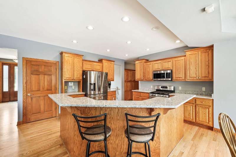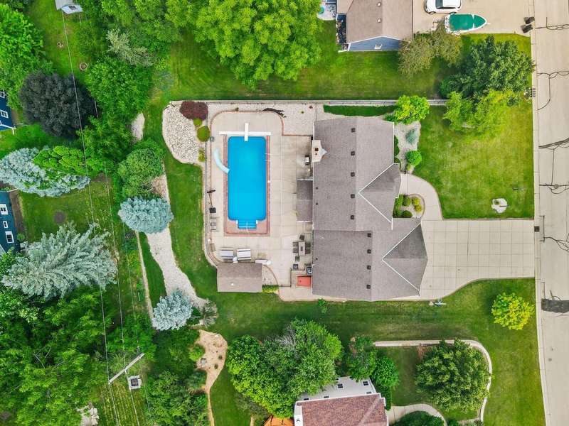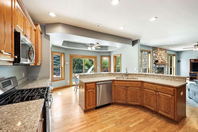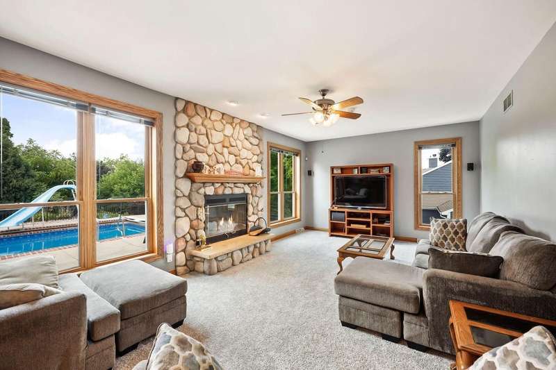 Spacious and move-in ready, this 5-bed, 4-bath home offers flexible living with a main-floor bedroom and full bath, first-floor laundry, and plenty of room. Many thoughtful updates have been made to keep this home beautiful and well maintained. The finished lower level includes a second full kitchen--ideal for guests or extended stays.Step outside to your private backyard oasis featuring a heated in-ground pool, and large patio. An oversized 3-car garage, wood burning fireplace, and abundant storage round out the features of this well-maintained home.