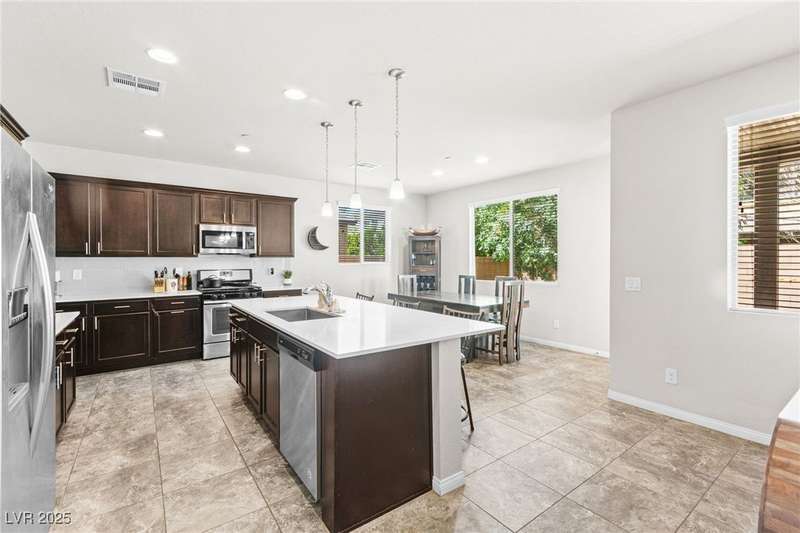 Modern style meets everyday comfort in this 3-bedroom plus den, 2,124 sq ft home situated in the sought-after Inspirada master plan. Stylish and move-in ready, this spacious home features an open-concept layout with a gourmet kitchen, complete with stainless steel appliances and quartz countertops, perfect for both everyday life and entertaining. The private primary suite serves as a tranquil retreat with a spa-inspired ensuite and a generous walk-in closet. Two additional bedrooms and a versatile den provide flexible space for family, guests, or a dedicated home office. Outside, enjoy a low-maintenance backyard and covered patio. Living in Inspirada is more than just a home, it’s a lifestyle. Enjoy access to miles of scenic trails, dog parks, skate plazas, and playgrounds, all designed for walkability and connection. With community pools, sports courts, and year-round events like farmers markets, concerts, and yoga in the park, Inspirada delivers a truly active, connected way of life.