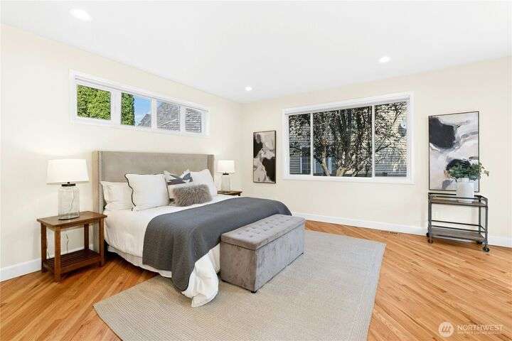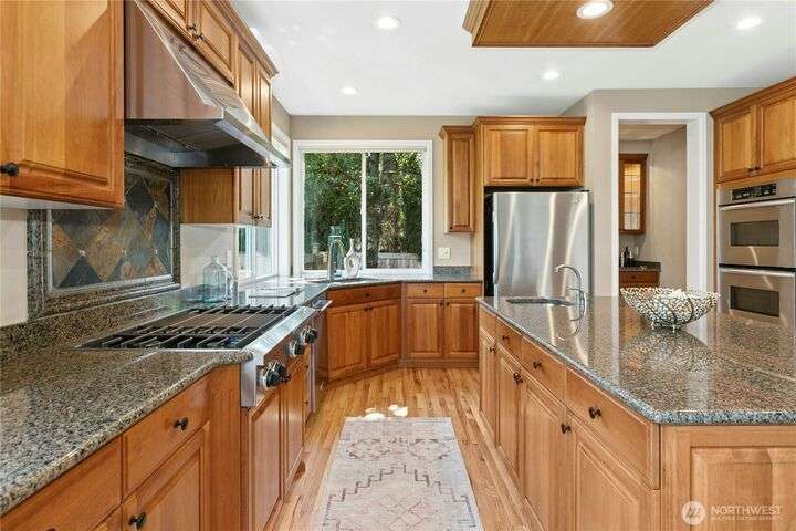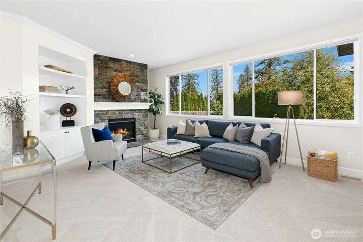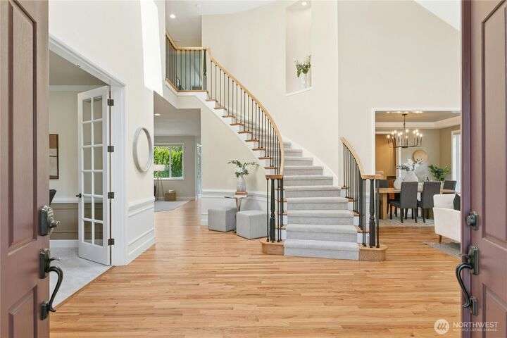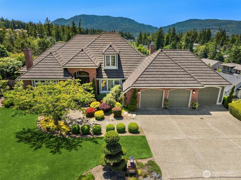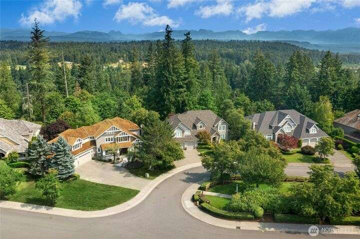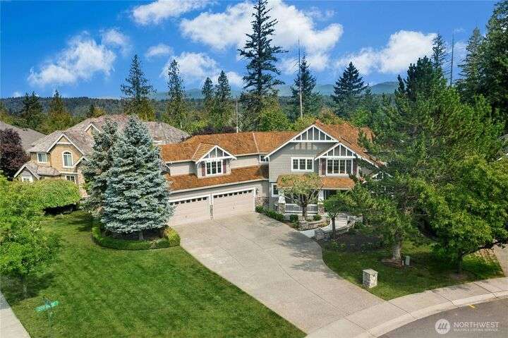 Sophistication meets comfort in this Murray Franklyn masterpiece in Aldarra Estates. A dramatic 2-story foyer opens to light-filled interiors with soaring ceilings, custom millwork, refinished hardwoods & new carpet. Chef’s kitchen w/ slab granite, alder cabinetry, butler’s pantry & grand center island is open to family room w/ gas fireplace & built-ins. Sought-after Barrington floorplan w/2 primary suites (main & upper), office, huge bonus. Owner’s retreat offers two walk-in closets, double-sided fireplace & spa bath. Spacious, private lot backs to greenspace w/ level lawn, garden, patio & hot tub. Cherished Aldarra Estates offers parks, trails, top schools & easy access to shopping/dining/Hwy 202 & I90. Pre-inspected & move-in ready.
