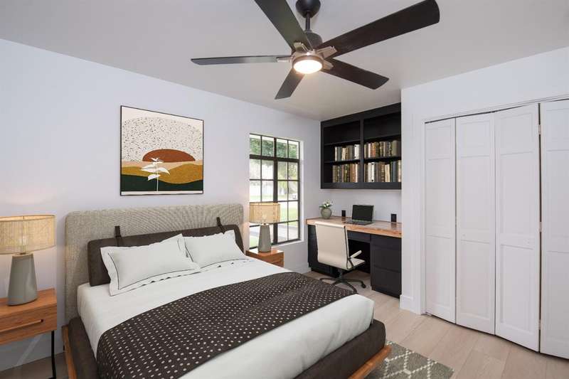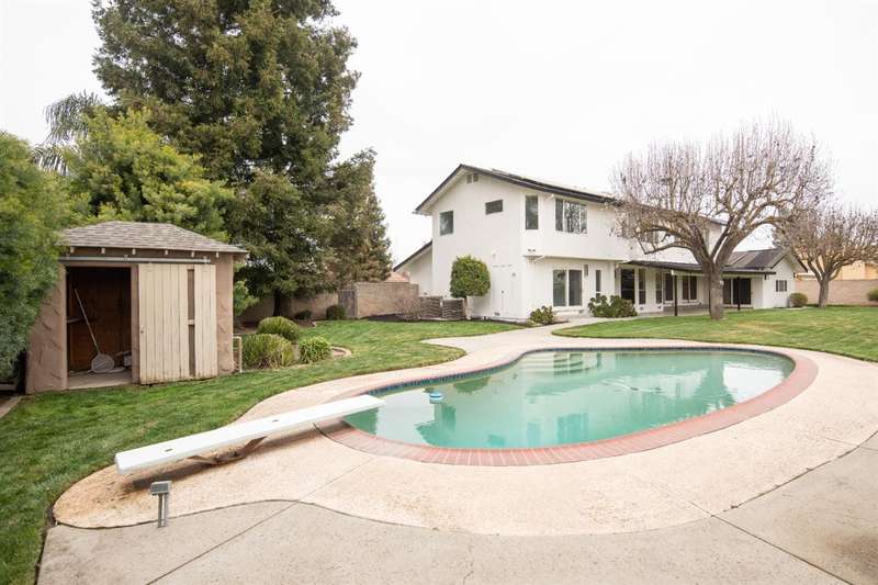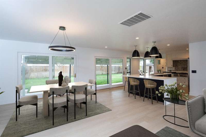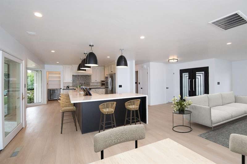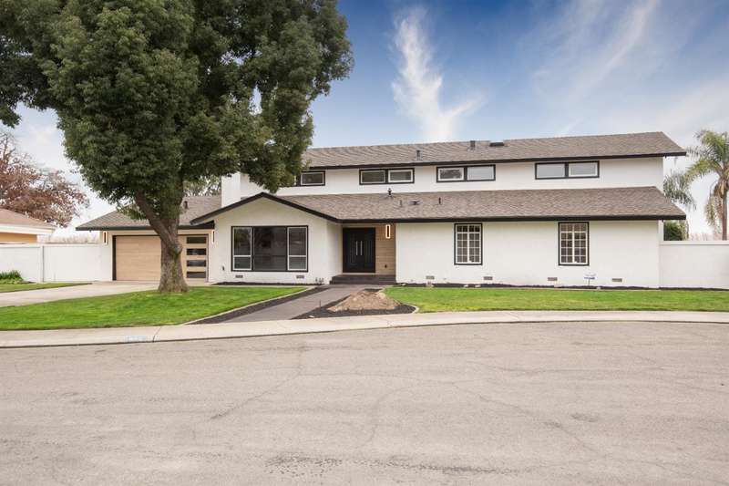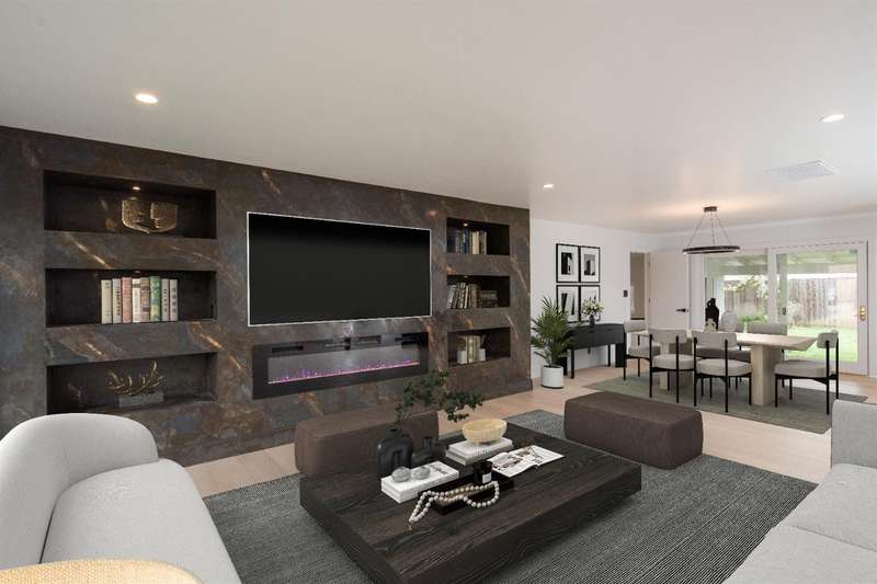 Home is being sold in as is condition. Tucked within the exclusive Del Rio Country Club community, this beautifully reimagined residence offers over 3,700 sq. ft. of thoughtfully designed living space on a generous lot. Featuring 5 bedrooms and 4 full baths, 3 of the bedrooms enjoy private en-suites, offering a true suite-style experience for guests or family. The open, airy floor plan is enhanced by soaring ceilings, engineered hardwood floors, and striking custom finishes. At its heart, a breathtaking Venetian plaster fireplace wall with built-in custom shelving anchors the living space as a showstopping design feature. A chef's dream, the kitchen showcases sleek stone countertops, a waterfall-edge island, high-end commercial-grade appliances, and custom cabinetry. Four sliding glass doors connect the interior to the expansive backyard, creating seamless indoor-outdoor flow. Enjoy a sparkling pool, sprawling lawn, and a large covered patio perfect for effortless entertaining. Additional highlights include a versatile den, spacious upstairs room, and a side yard with RV or boat parking potential. Move-in ready and beautifully finished, this is elevated California living at its finest.