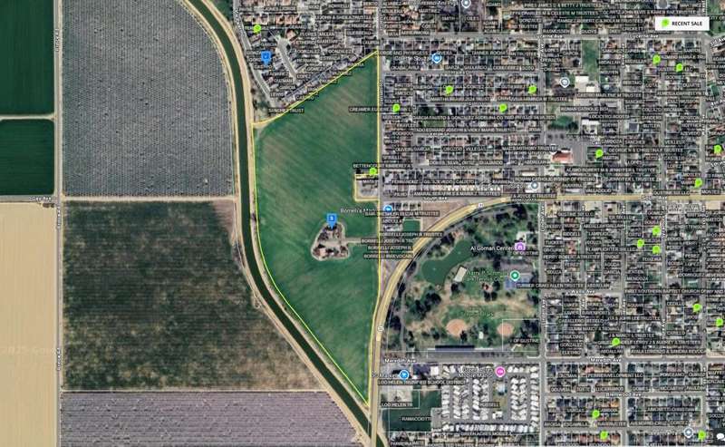 Looking for a property that is close-in to the City limits of a California town. This is the one. Any potential buyer should check with the City of Gustine for any future development (if that is their desired use). The property is not in the Williamson Act. The land is currently planted in Alfalfa with a lease that can potentially be bought out. There are two houses that are in poor condition, all prospects shall satisfy themselves as to the feasibility of rehabbing them. The barn on the property is in relatively good condition with concrete floor. The ranch is in the Central California Irrigation District (CCID) and is currently being flood irrigated. It is adjacent to the CCID canal.