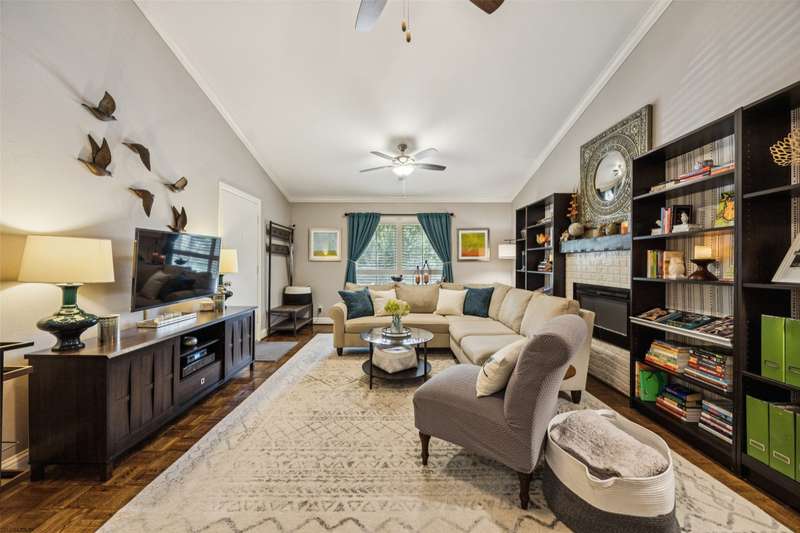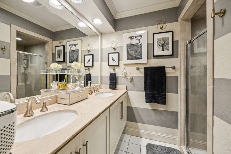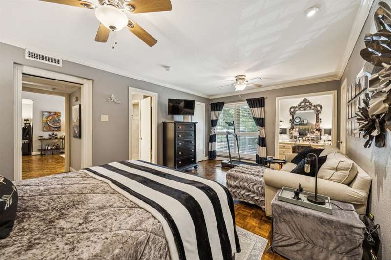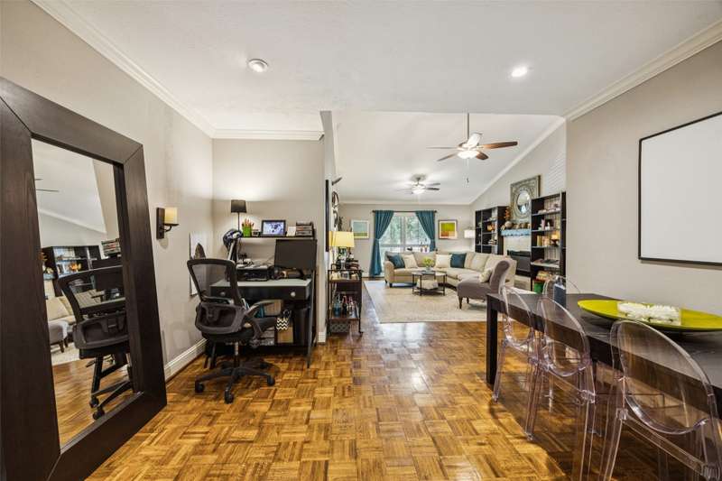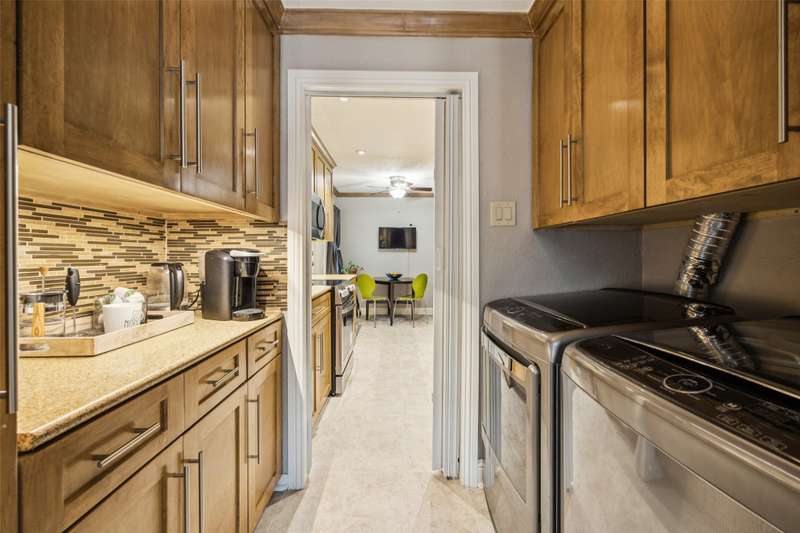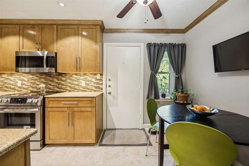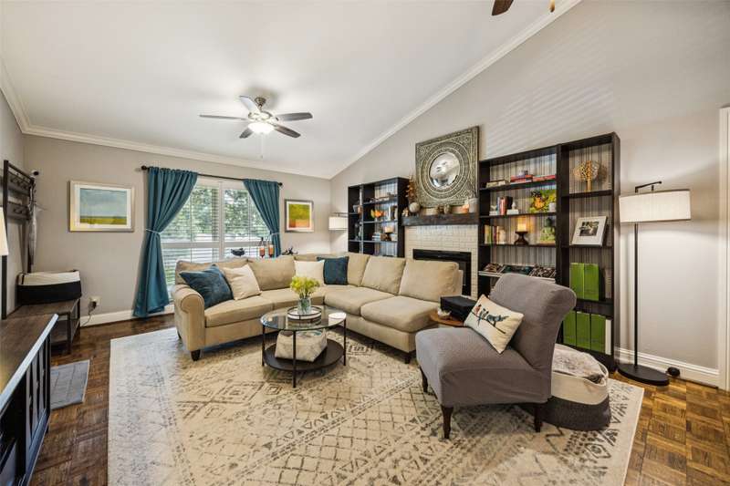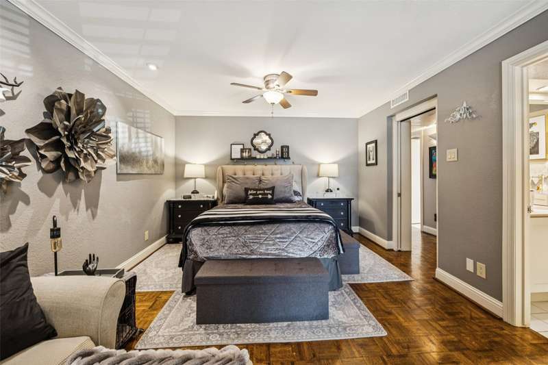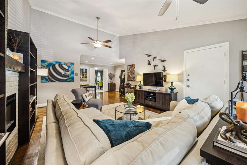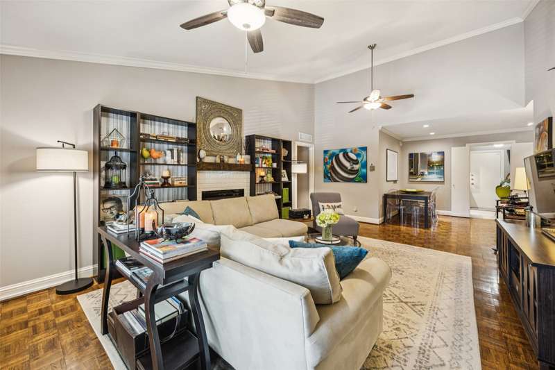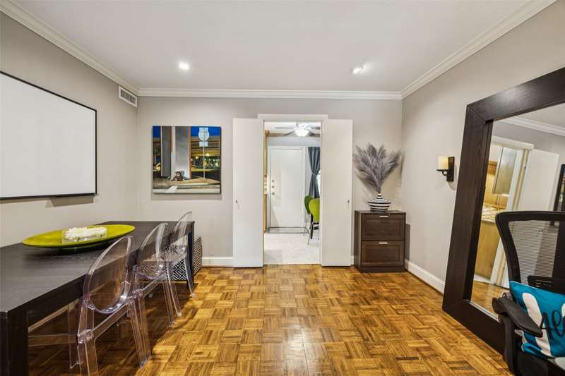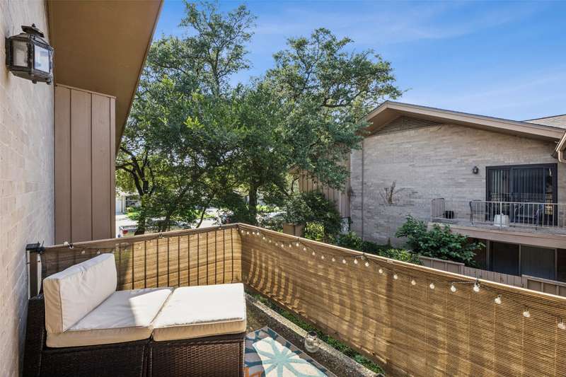 Seller is offering FREE washer, dryer, fridge freezer as well as a credit equivalent to six months of HOA dues with full price offer.Step into timeless style and modern comfort in this spacious, move-in ready, mid-century condo featuring beautiful parquet floors, a soaring vaulted ceiling in the living room, pocket doors, crown molding, wood shutters, and a private balcony. The oversized primary suite offers two walk-in closets, an ensuite bathroom with double sinks and tiled shower, and an additional nook which can be used as a vanity or WFH area.The generously-sized second bedroom has two large closets and access to the balcony, while the second bathroom has new lighting, a tiled bath and shower area, and a huge linen closet with tons of storage. The eat-in kitchen has been tastefully updated with rich wood cabinetry, granite countertops, matching stainless steel appliances, including a recently replaced oven, recent tile flooring, and the adjacent utility room includes washer dryer hookups, additional storage, and a counter for food prep or a coffee station. The kitchen also has a door to your back balcony and for entry from the exterior stairs. Energy-efficient updates include insulation, double-paned windows throughout, and a beautiful sliding door to balcony.Enjoy worry-free living with ALL UTILITIES included in the HOA fee, as well as grounds maintenance and exterior insurance. And, you have no HVAC or water-heater to maintain! This safe, well-maintained community boasts lush, landscaped grounds and 4 sparkling pools to choose from, including one just steps from your door. Walking distance from the Northhaven Trail, Northhaven Gardens, and the JCC; plus, easy access to 75, 635, and the DNT. Secure building and communal areas, plus one covered parking space conveys with sale. Traditional charm and carefree comfort await... Come see for yourself!