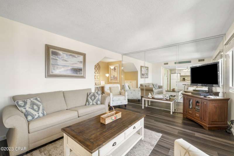 Welcome to your slice of paradise at Pinnacle Port! Nestled in the most coveted wing of this prestigious community, this 2-bedroom, 2.5 bathroom townhome-style condo boasts breathtaking panoramic views down the pristine beach, overlooking Camp Helen State Park, Inlet Beach, Rosemary Beach and 30A on the main floor and views down Panama City Beach and Pier park on top floor. Step inside this updated townhome style condo Large windows frame the stunning vistas, offering daily doses of the mesmerizing beachfront right from the comfort of your condo.The master suite is a serene retreat, complete with its own private balcony access and an ensuite bath for utmost convenience and luxury. The second bedroom also offers comfort and privacy for guests or family members.This exclusive condo comes with a range of amenities, including, boat ramp, boat slips 2 pools, tennis/ pickleball counts, grilling area fitness center, private beach access, ensuring a lifestyle of relaxation and leisure.Pinnacle Port's desirable location provides a lakefront and beachfront property with easy access to Rosemary Beach, Alys beach and 30A's dining, and entertainment options, making it an ideal choice for both a vacation rental machine or a permanent residence.Don't miss this rare opportunity to own a piece of paradise in the most sought-after wing of Pinnacle Port. Embrace coastal living at its finest and make this stunning condo your own!