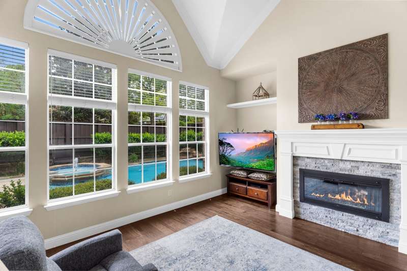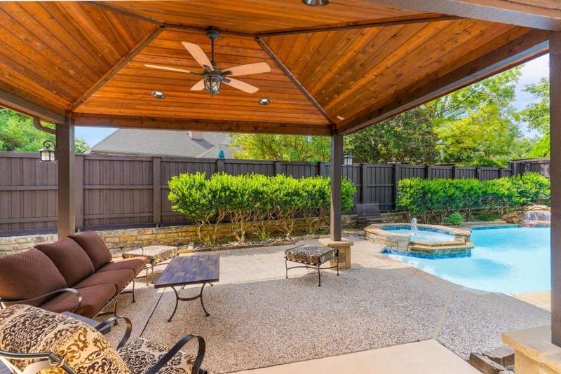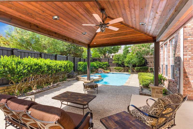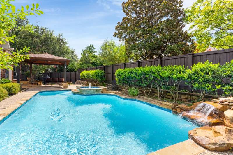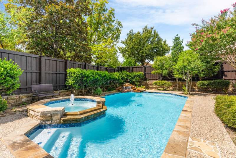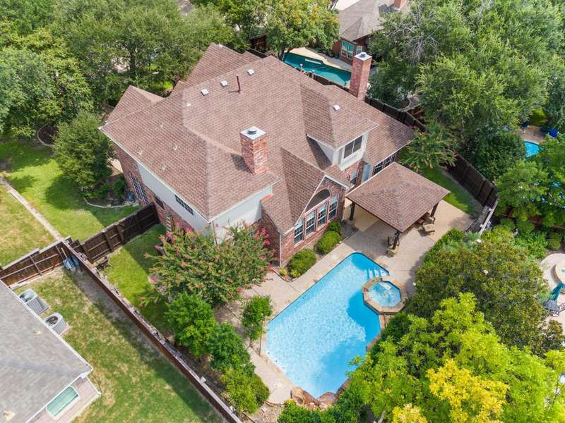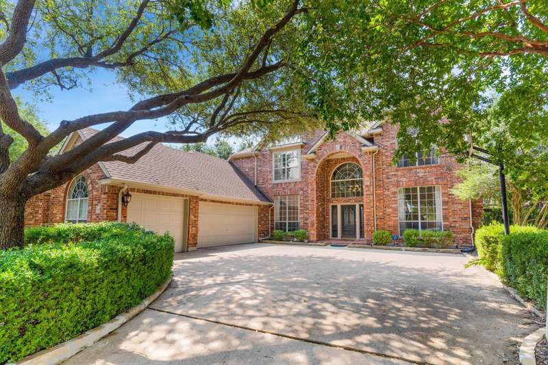 Well kept Darling-built home nestled among tall trees in the prestigious Stonebridge Ranch. Fabulous location, this property offers a private backyard, a resurfaced pool and spa, and a large arbor on a .26-acre, north-facing lot. The flexible floorplan is ideal for both entertaining and family living, with excellent flow throughout the indoor and outdoor spaces. The home boasts hardwood floors, crown molding, a dramatic entry and staircase, 10-foot and soaring ceilings, two fireplaces, decorative arches and niches, built-ins, and walls of windows with stunning views. The study downstairs could serve as a fifth bedroom, conveniently located next to a remodeled full bath with shower. The oversized master bedroom features a fireplace, a bay window, an exterior door, and views of the pool and arbor. The master bath has been fully remodeled with large shower, high end fixtures, freestanding tub and quartz counters. The main level includes formal dining and living areas, and a gourmet kitchen with granite countertops, an island, a breakfast nook, and a breakfast bar, which opens to the family room with a fireplace. Upstairs, you will find a spacious game room, three additional bedrooms, a remodeled full bath, and a remodeled Jack and Jill bathroom. The property also includes a three-car garage.