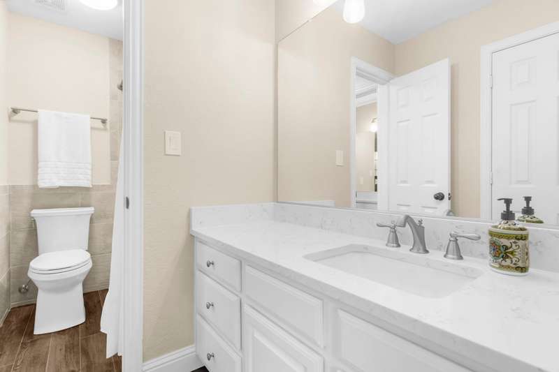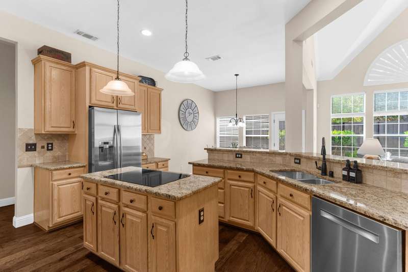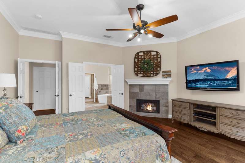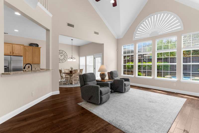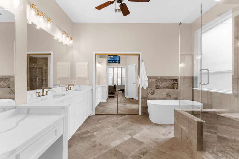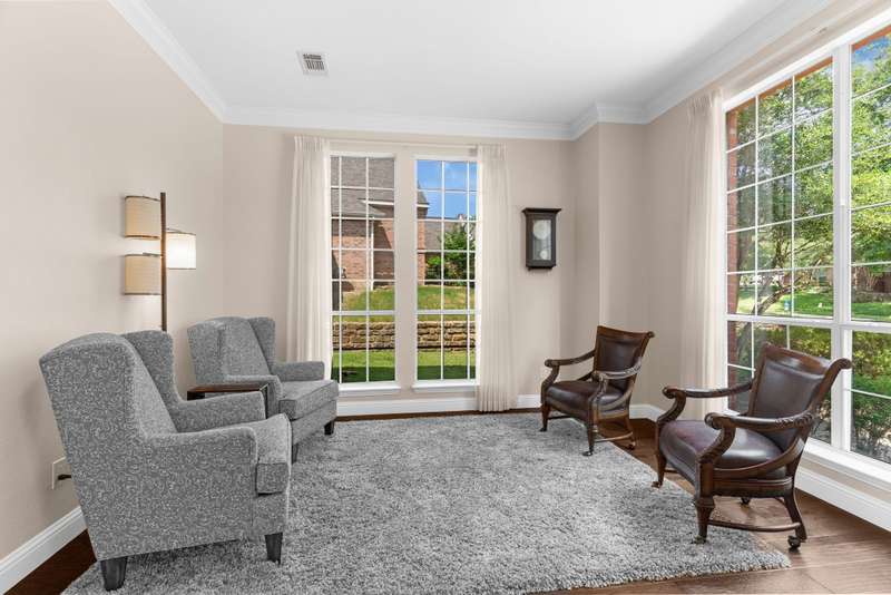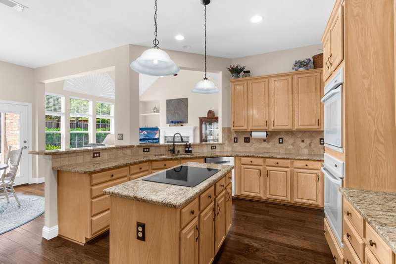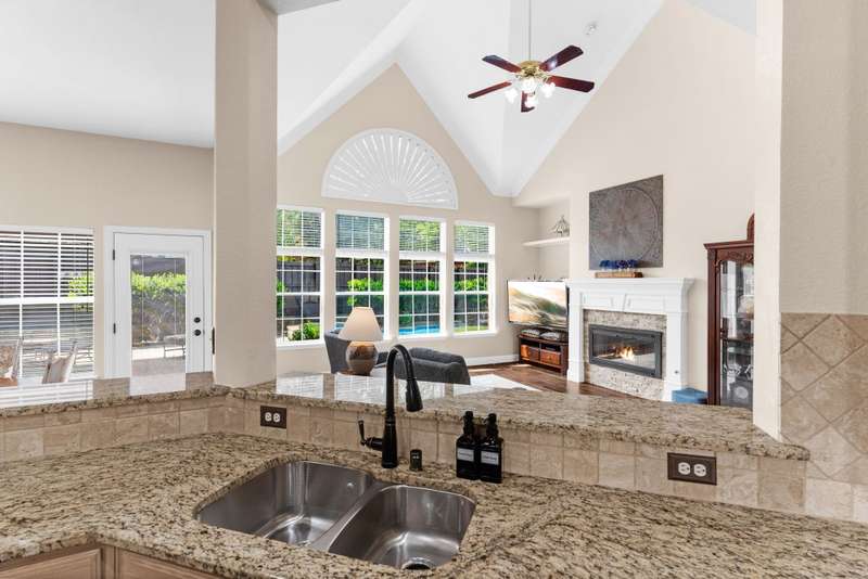 Well kept Darling-built home nestled among tall trees in the prestigious Stonebridge Ranch. Fabulous location, this property offers a private backyard, a resurfaced pool and spa, and a large arbor on a .26-acre, north-facing lot. The flexible floorplan is ideal for both entertaining and family living, with excellent flow throughout the indoor and outdoor spaces. The home boasts hardwood floors, crown molding, a dramatic entry and staircase, 10-foot and soaring ceilings, two fireplaces, decorative arches and niches, built-ins, and walls of windows with stunning views. The study downstairs could serve as a fifth bedroom, conveniently located next to a remodeled full bath with shower. The oversized master bedroom features a fireplace, a bay window, an exterior door, and views of the pool and arbor. The master bath has been fully remodeled with large shower, high end fixtures, freestanding tub and quartz counters. The main level includes formal dining and living areas, and a gourmet kitchen with granite countertops, an island, a breakfast nook, and a breakfast bar, which opens to the family room with a fireplace. Upstairs, you will find a spacious game room, three additional bedrooms, a remodeled full bath, and a remodeled Jack and Jill bathroom. The property also includes a three-car garage.