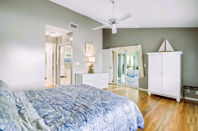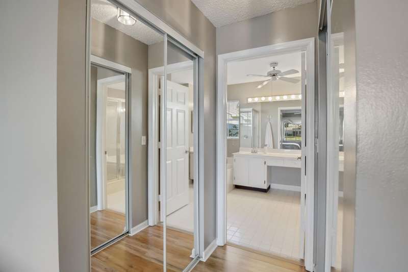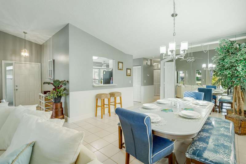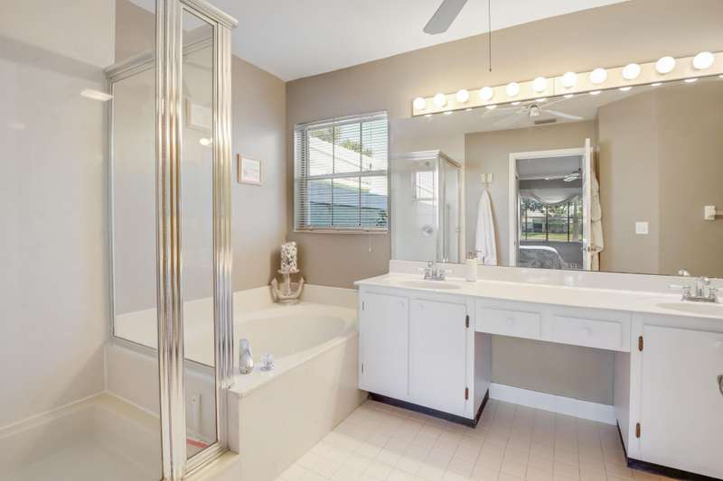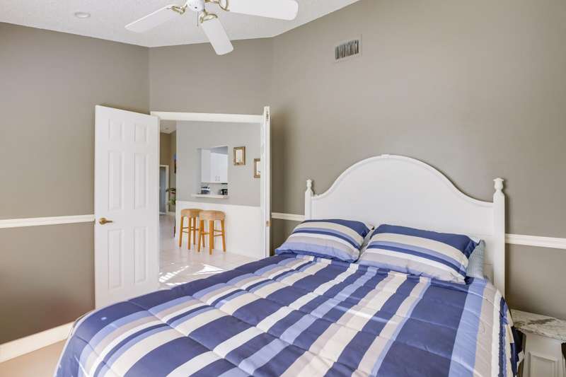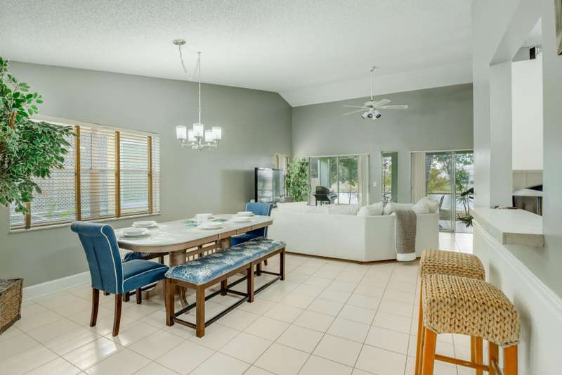 Wonderful opportunity to own a beautiful 3 bedroom, 2 bath villa that has extraordinary water views and is in the Binks/Landings school zone. Brand new exterior paint and pressure cleaning. This conveniently located, gated community of Lakefield, is golf cart distance to the Winter Equestrian Festival Horse Show and show grounds, Wanderers Club and all the fun things Wellington has to offer. This open floor plan w/split bedrooms has a lovely screened back patio to enjoy your sunset views, inside washer/dryer, 2 car garage, master bedroom has 2 walk-in closets, separate bathtub and shower, tile and hard flooring thru-out (no carpet) and is very private. HOA just painted and pressure cleaned (every 4 yrs). HOA covers lawn care. Furniture included in sale. Bring your bags and move right in!