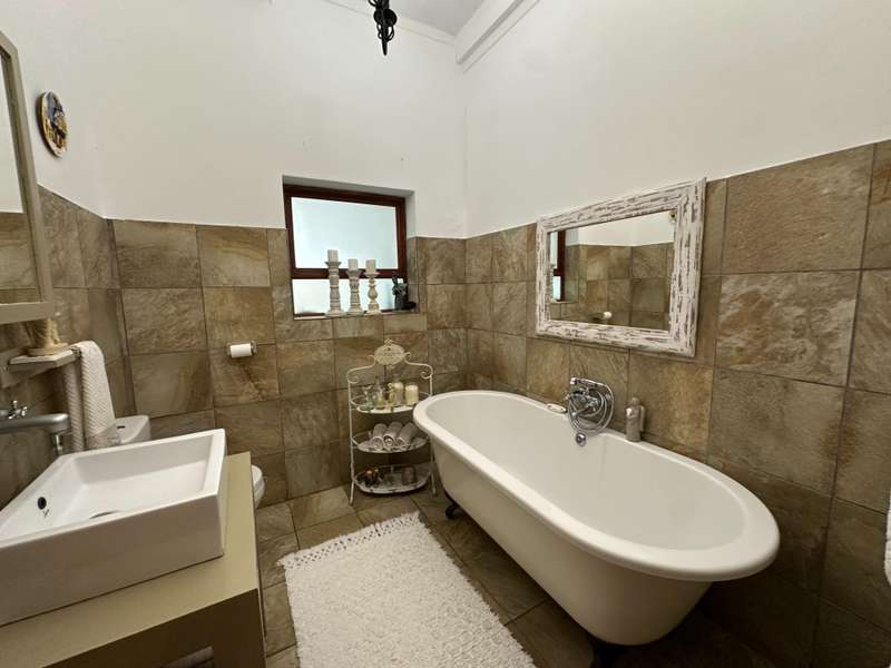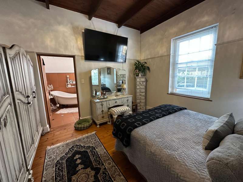 Exclusive sole mandate. A wonderful opportunity to own one of Stanford's olde vintage charm properties. Centrally located, this FarmStyle character family home will take you back to yesteryear. The house is meticulous in appearance and hosts a wraparound stoep where you can relax and watch the world go by. Entering the house from the stained-glass front door, one is struck by its warm and comfortable feel. Special features are the origan pine flooring, wooden beamed ceilings as well as sash windows for that real heritage experience. Loadshedding is a breeze when the system automatically switches over to the strong inverter and battery system. The property is walking distance to all amenities and can easily be converted into a Bed and Breakfast or Air B&B. From the front wrap-around stoep you will go through the stained-glass front door which opens into the entrance hall of this charming property. Down the passage you will find 3 double sized bedrooms, 2 en-suite bathrooms and a separate 3rd bathroom with a shower and a bath. The spacious open plan kitchen has a separate scullery and doors leading to the enclosed back garden big enough for your pets or children play area with a wendy house. From the kitchen is the open plan dining area big enough for the whole family. The entertainment area is the heart of this amazing property where family and friends can spend quality time together. This light and airy area hosts an indoor braai, a bar area and TV room with doors leading to an outside patio and braai area. Spiral stairs from the kitchen are leading to the upstairs loft where you will find 2 bedrooms and a study. The property hosts a separate laundry which is situated next to the single garage and undercover parking for 2 vehicles. This is a property worth viewing. Contact Amanda for an appointment.