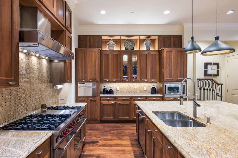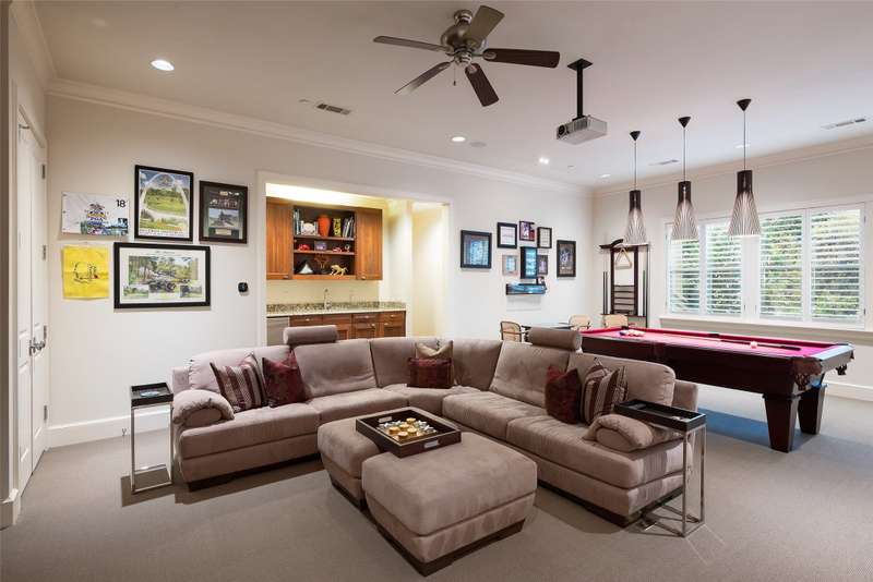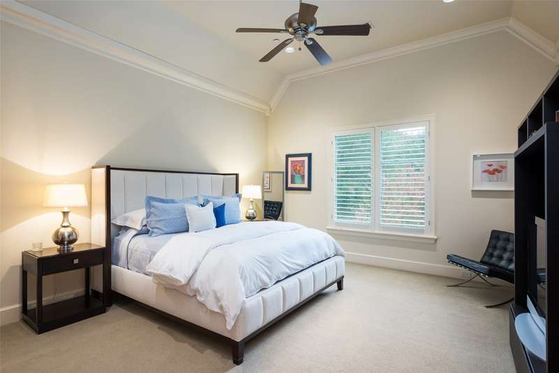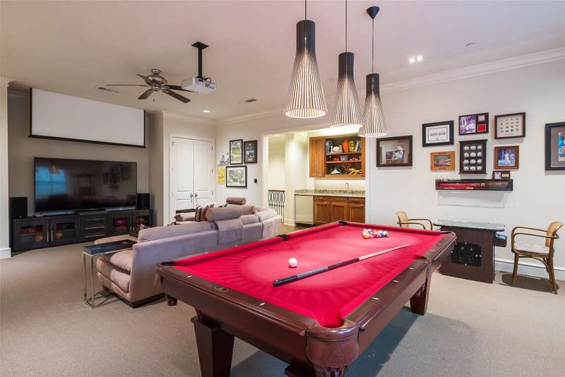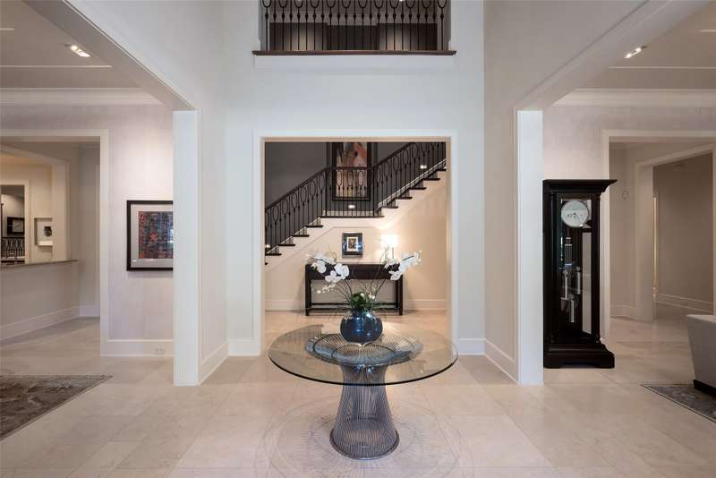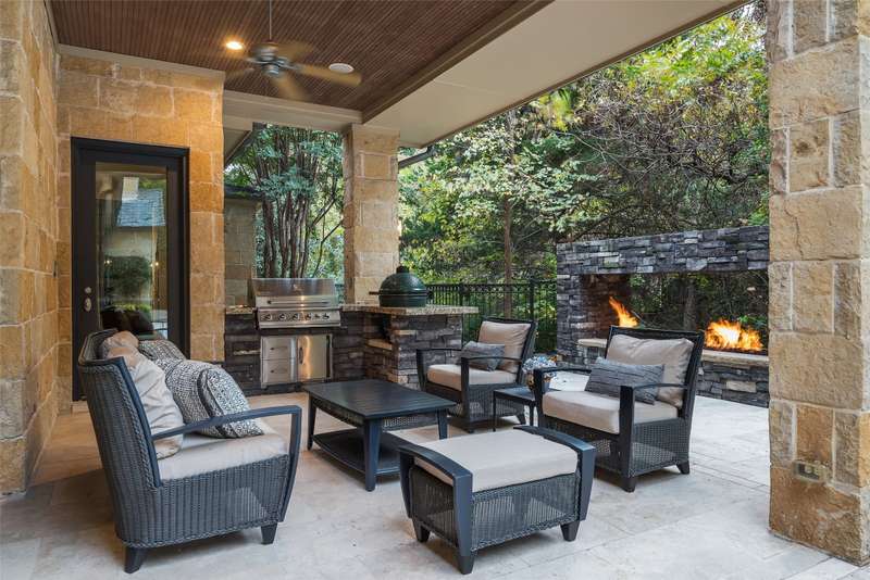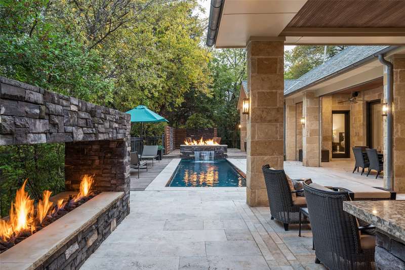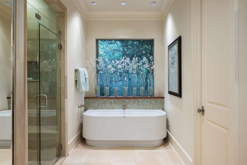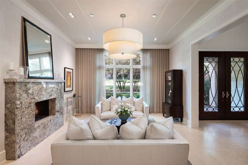 Nestled in the exclusive, guard-gated Glen Abbey community, this exceptional creekside estate offers over half an acre of serene privacy and breathtaking views. With its timeless design and luxurious finishes, 33 Glen Abbey combines elegance and comfort in an exceptional floor plan. A wide foyer provides grand entry to the formal dining and living areas. The gourmet kitchen is a chef's dream, featuring Sub-zero, Wolf, and Miele appliances. The oversized island and keeping room with a cozy fireplace offer the perfect setting for casual dining and gatherings. A beautifully appointed bar and butlers pantry, complete with a warming drawer, beverage fridge, and abundant prep space, are ideal for entertaining. The expansive master suite is a private retreat, offering a sitting area with a fireplace, views of the lush backyard, and a spa-like bath with his-and-her bathrooms, dual closets, heated floors, and a shared coffee bar. Guests will appreciate a second bedroom suite at the opposite end of the downstairs. Upstairs, the game room is designed for both relaxation and entertainment, with a wet bar, beverage fridge, and a projector for movie or game nights. Three en suite bedrooms provide space for family and friends, while the adjacent flex space serves as a home gym or personalized retreat, catering to your lifestyle needs. Step outside to discover a true outdoor oasis. The backyard features a sparkling pool, hot tub, fire pit, and two fire features, all set against the tranquil backdrop of the creek. Spacious covered patios and an outdoor kitchen provide plenty of room for relaxation and al fresco dining. Additional highlights include a four-car garage with epoxy floors and built-in drains, five replaced HVAC systems, built-in sound system and a dedicated storage room. High-end finishes including custom walnut cabinets, Leucos and Alder light fixtures, Jerusalem Gold tile, Maya Romanoff silk wall coverings and natural onyx tile complete this remarkable residence.