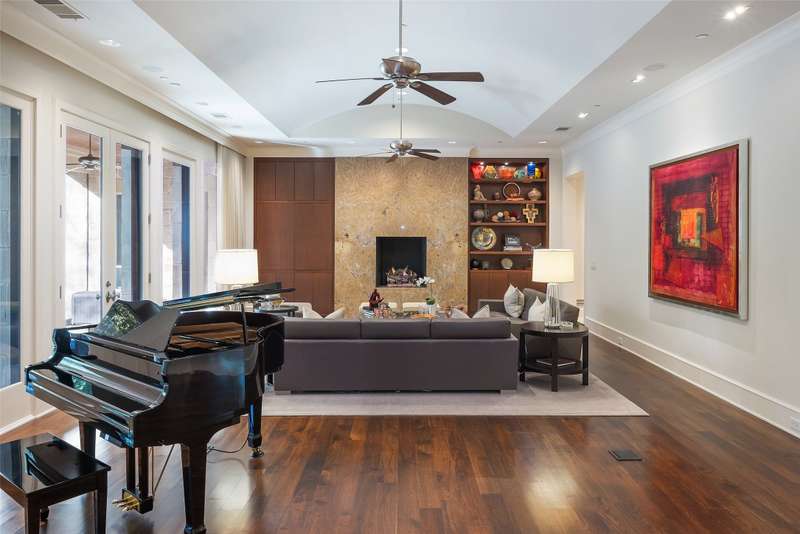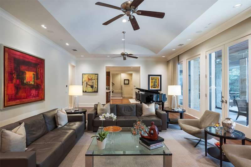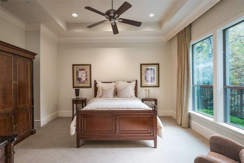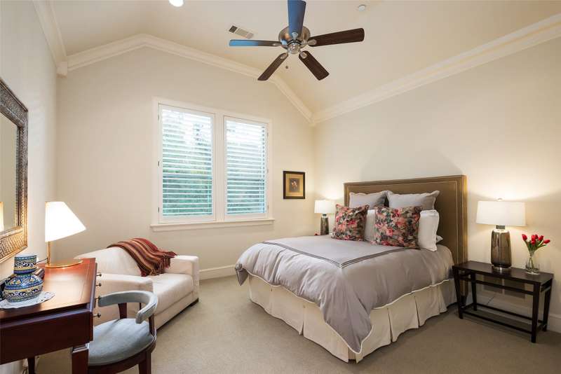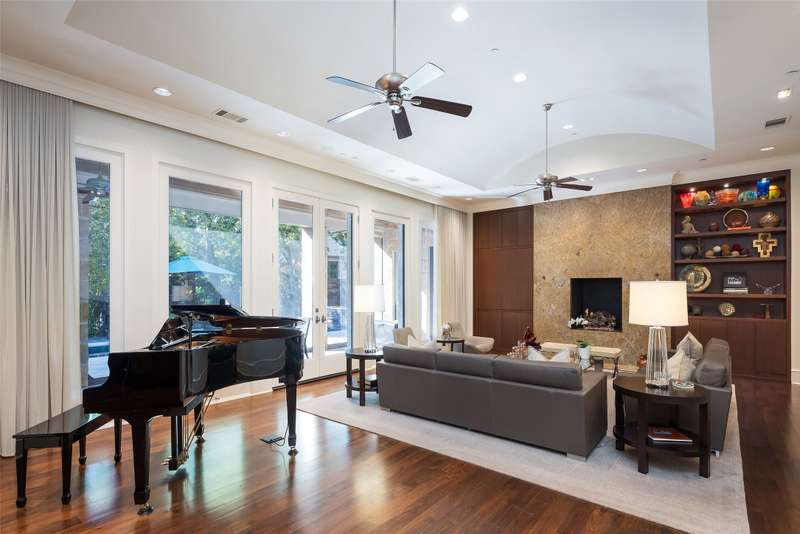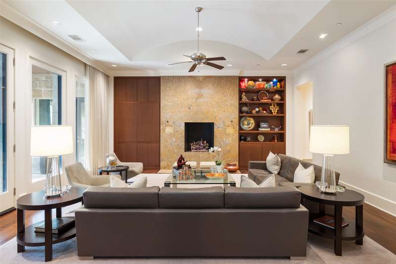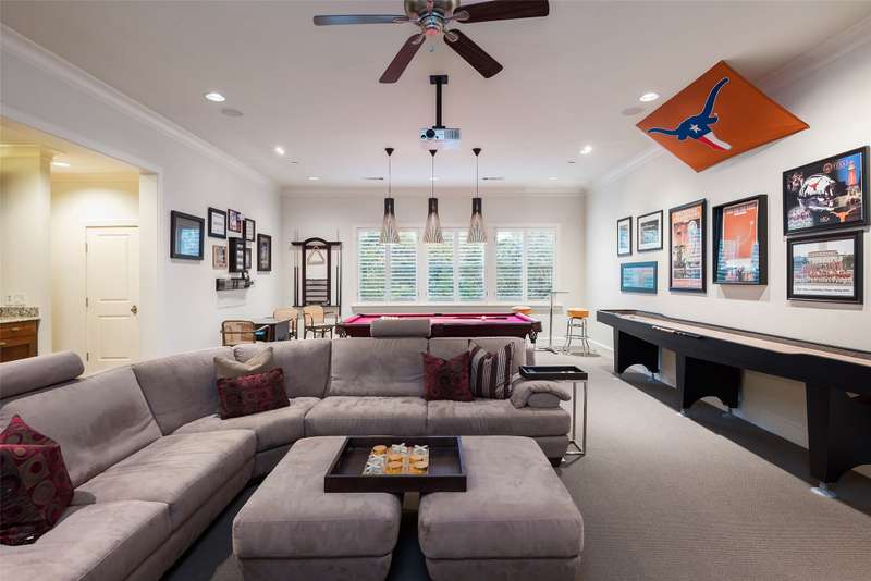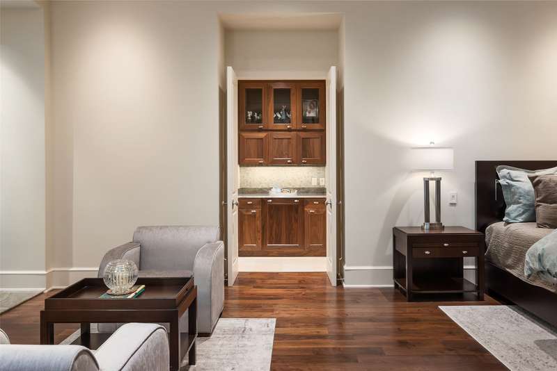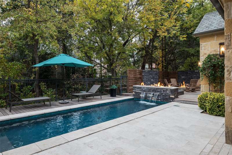 Nestled in the exclusive, guard-gated Glen Abbey community, this exceptional creekside estate offers over half an acre of serene privacy and breathtaking views. With its timeless design and luxurious finishes, 33 Glen Abbey combines elegance and comfort in an exceptional floor plan. A wide foyer provides grand entry to the formal dining and living areas. The gourmet kitchen is a chef's dream, featuring Sub-zero, Wolf, and Miele appliances. The oversized island and keeping room with a cozy fireplace offer the perfect setting for casual dining and gatherings. A beautifully appointed bar and butlers pantry, complete with a warming drawer, beverage fridge, and abundant prep space, are ideal for entertaining. The expansive master suite is a private retreat, offering a sitting area with a fireplace, views of the lush backyard, and a spa-like bath with his-and-her bathrooms, dual closets, heated floors, and a shared coffee bar. Guests will appreciate a second bedroom suite at the opposite end of the downstairs. Upstairs, the game room is designed for both relaxation and entertainment, with a wet bar, beverage fridge, and a projector for movie or game nights. Three en suite bedrooms provide space for family and friends, while the adjacent flex space serves as a home gym or personalized retreat, catering to your lifestyle needs. Step outside to discover a true outdoor oasis. The backyard features a sparkling pool, hot tub, fire pit, and two fire features, all set against the tranquil backdrop of the creek. Spacious covered patios and an outdoor kitchen provide plenty of room for relaxation and al fresco dining. Additional highlights include a four-car garage with epoxy floors and built-in drains, five replaced HVAC systems, built-in sound system and a dedicated storage room. High-end finishes including custom walnut cabinets, Leucos and Alder light fixtures, Jerusalem Gold tile, Maya Romanoff silk wall coverings and natural onyx tile complete this remarkable residence.