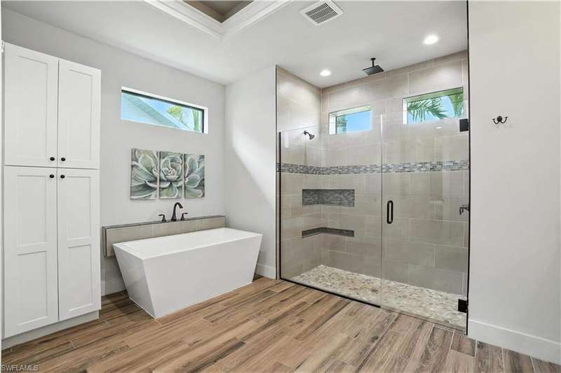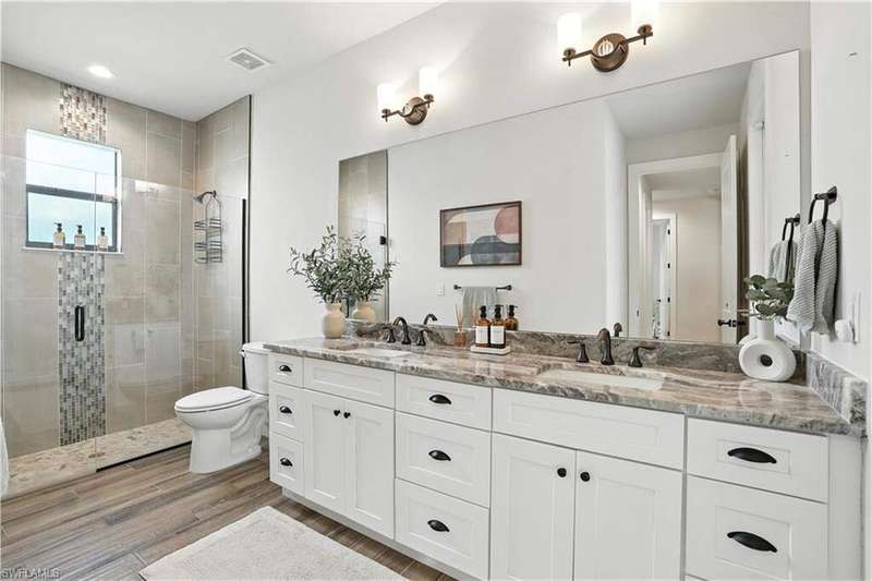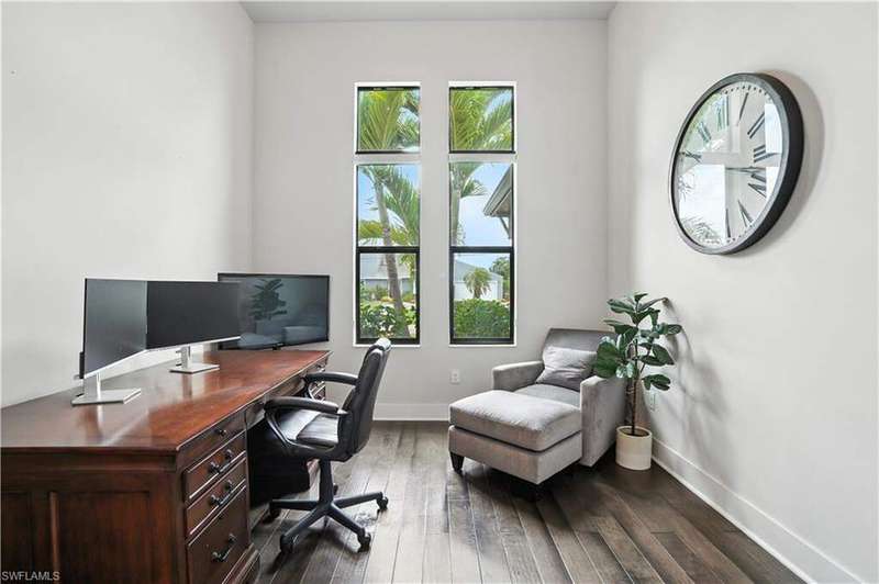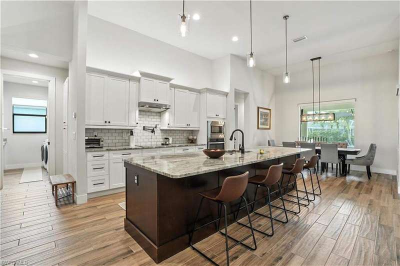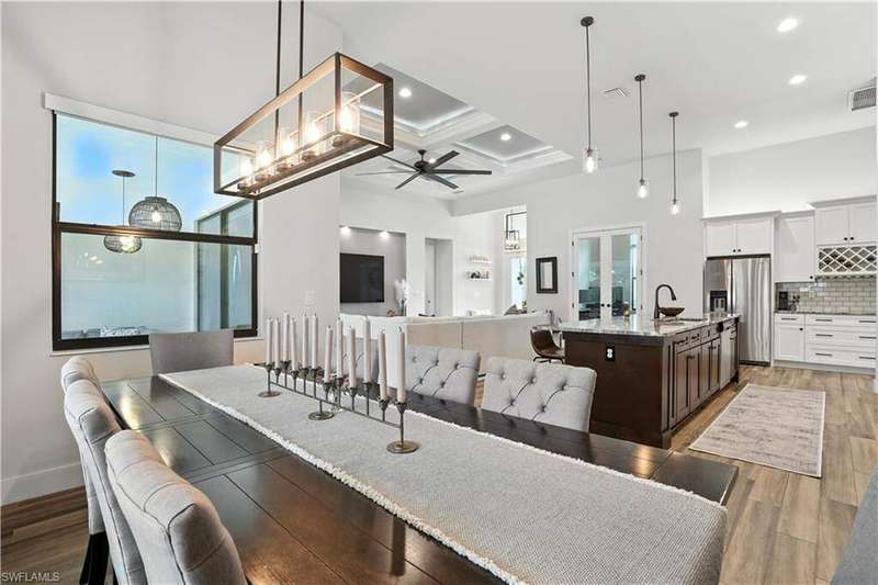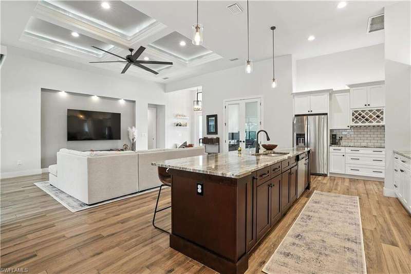 This like-new Cayman model is located in a quiet, family-friendly neighborhood in desirable Southwest Cape Coral-just minutes from Cape Harbour and downtown Cape Coral, offering easy access to shopping, dining, and all the great restaurants the area has to offer! Featuring over 2,200 sq ft, this home includes 3 bedrooms plus a den, 2 full bathrooms, and a 3-car garage with epoxy flooring. Interior upgrades include 6x36 wood-look plank tile throughout, wood flooring in the den, crown molding with rope lighting in tray ceilings, level 5 granite countertops, level 5 drywall finish, and stainless steel appliances. The metal roof includes a decorative cupola, and the home is equipped with underground electric and a 15kW generator hookup. The resort-style saltwater pool is the centerpiece of the extended lanai, complete with a picture screen enclosure and a full outdoor kitchen with vented hood-ideal for relaxing or entertaining. This move-in-ready home is packed with thoughtful upgrades and perfectly set up for stress-free Florida living. Schedule your showing today!