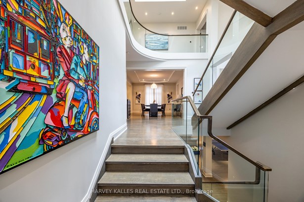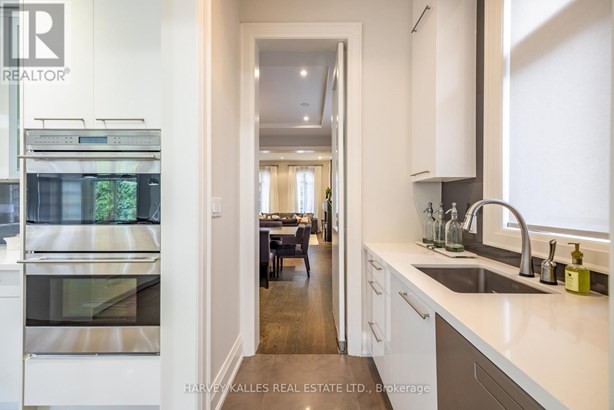 Welcome to Quatorz Sulgrave, a custom luxury home in the prestigious St. Andrews neighbourhood of Toronto. Completed in 2014 by Rostek Homes with classic architecture by David Wooldridge and modern transitional interiors by CMID, this residence offers approximately 7,900 Sq. Ft. of total living space, including ~ 5,000 Sq. Ft. above grade, on a 90' x 125' lot. Designed with timeless elegance, the Indiana limestone façade and professionally landscaped gardens set the stage for refined living. Inside, 10' ceilings, oak hardwood floors, Savaria elevator, applied mouldings, and custom millwork showcase exceptional craftsmanship. The main floor blends formal and family living with a living/dining room, study, and an open-concept chef's kitchen featuring Sub-Zero/Wolf appliances, quartz waterfall island, butler's pantry, and breakfast area overlooking the two-storey family room with soaring 20' ceiling and linear fireplace. The upper level offers 4 vaulted bedrooms with ensuites, including a serene primary retreat with fireplace, dressing room, and 7-piece spa-inspired ensuite. The finished lower level includes a recreation room, games room, wet bar, fifth bedroom/gym, cedar closet, arcade, and cold cellars. Outdoor living is enhanced with stone interlock, outdoor kitchen/wet bar, fenced yard, and standby generator. Additional features: 4-car built-in garage with EV charger, 6-car drive, smart home wiring, built-in speakers, alarm and camera system, and dual furnaces & A/C. Ideally located near Bayview Village, The Granite Club, Highway 401, and some of Toronto's top private and public schools. A rare opportunity to own a custom-built St. Andrews luxury home of enduring style, exceptional quality, and unparalleled convenience.