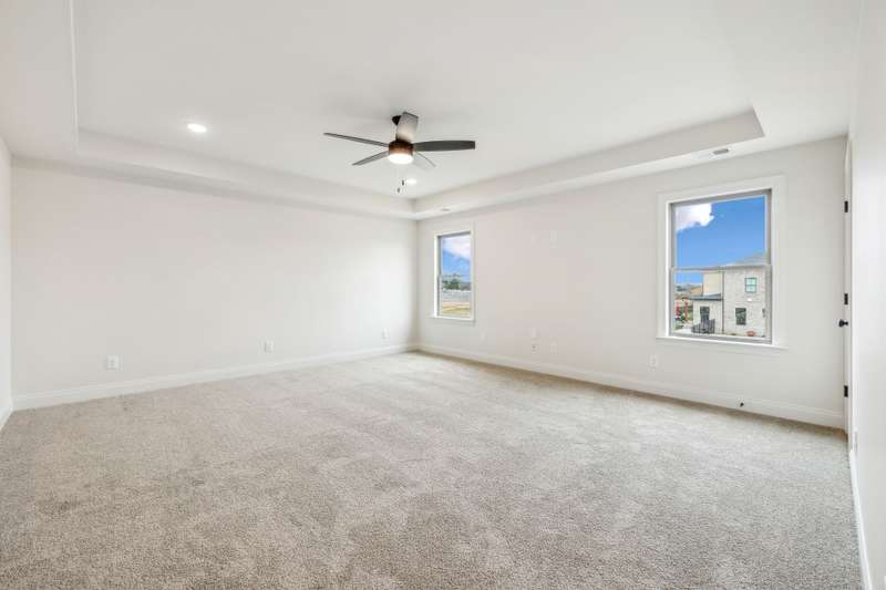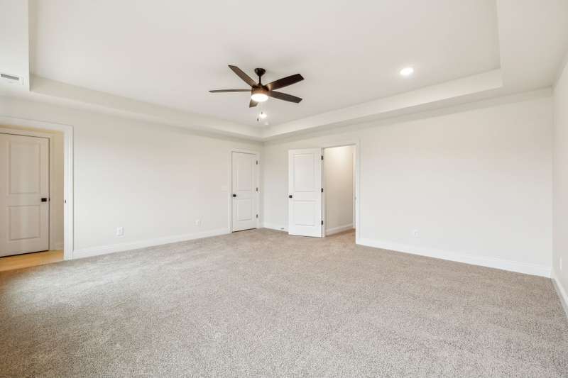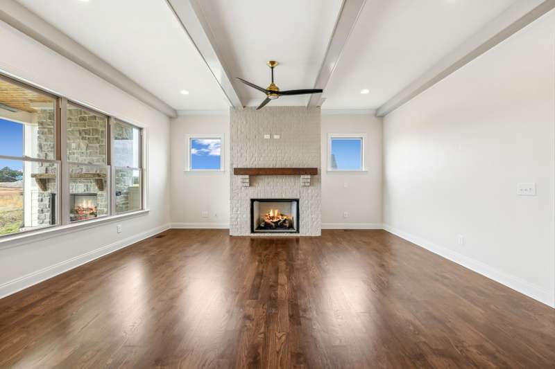 New lower price!! This home is the popular Rivermont plan by Four Corners. (2 beds down, 3 beds up, 4 full baths.) Designer Kitchen features oversized island, quartz countertops, under cabinet lights, gas cooktop, single oven + microwave combo! 3 car garage, wood porch ceilings, covered rear patio with gas fireplace! Sand and finish hardwood flooring downstairs. Custom built-ins in drop zone & primary closet. Primary bathroom features quartz counters, full tile shower w/ frameless shower door, and freestanding soaking tub. Custom cabinets throughout home w/ soft close doors & drawers. Home is move in ready!!