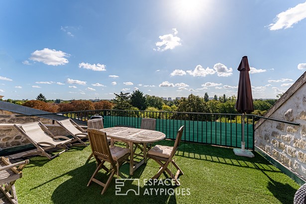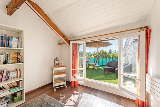 The second floor offers an additional bedroom, an office space or guest room giving access to a terrace with panoramic views, as well as a shower room with WC. The attic has been converted to provide additional storage or leisure space. The property also has four cellars, ideal for storage. The exterior reveals a vast green garden, ideal for relaxation and family time. A garden shed, a motorized gate, and private parking for several vehicles, equipped with an electric charging station, complete this ensemble. The terrace overlooking the banks of the Seine and offering an unobstructed view of the La Defense district is a remarkable asset.