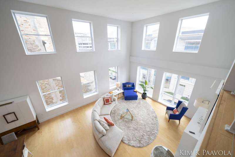 THE CROWN JEWEL of the prestigious Fitzgerald Condos! 3 spacious beds, 3.5 gorgeous baths,. over 3500 sq feet that show like new! Soaring 2 story ceiling on sprawling main floor abounding in windows & flooded with light. Over the top design & finish details. Gorgeous kitchen is a chef's dream! Extremely spacious owner's suite with FP + 2nd full suite w private bath. Superb views from large rooftop deck. Enjoy quiet in the city with no neighbors above or below. Two covered parking stalls. Easy walking distance to all things downtown GR, enjoy fine dining, breweries, entertainment, nightlife & culture all within a 2-10 minute walk. You'll also love the rooftop deck with 3 gas grills, 2 firepits & hot tub! The photos tell the story! This is top-end city living at it's absolute best!
