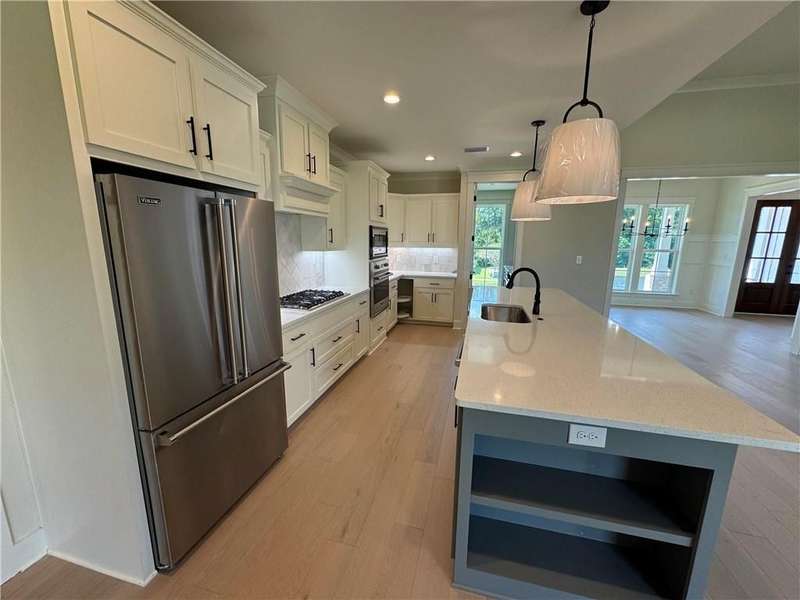 UNDER CONSTRUCTION* Step inside this beautiful, uniquely designed home, built by Tower Homes, a single-story layout that blends timeless style, modern comfort, & functional living. At the heart of the house, the spacious living room with a gas fireplace flows seamlessly into the kitchen & breakfast area, creating an open setting perfect for gatherings or everyday life. The chef's kitchen boasts an XL center island with bar seating, abundant cabinetry, elevated Viking brand appliances, & a walk-in pantry, messy kitchen, featuring extra outlets, cabinetry, & a small sink, ideal for keeping appliances tucked away & your main living space spotless. The private primary suite is a true retreat, offering dual vanities, a soaking tub, a separate tiled shower, & a walk-in closet. Three additional bedrooms provide flexibility & comfort: two share a convenient Jack & Jill bath, while the third enjoys its own en-suite. A formal dining room with elevated wainscoting & an entry foyer adds architectural elegance, while the covered back porch extends living outdoors. Clever design continues with a spacious laundry room with a utility sink, a guest half bath, a drop zone off the 2-car garage, & plentiful storage throughout. Located in The Verandas, just off Hwy 181, residents enjoy community amenities including a pool, clubhouse, & beautifully maintained common areas. Perfectly positioned only 10 minutes from Downtown Fairhope, you will have quick access to boutique shopping, dining, schools, & the bayfront. With its balance of open-concept living, private retreats, and neighborhood amenities, this home offers the best of Fairhope living. Gold Fortified, the home includes a 1-yr builder warranty, 10-yr PWSC structural warranty, & a 1-yr termite bond with Formosan coverage. One or more principals of the selling entity are licensed real estate agents & or Brokers in AL. Est. Completion: Oct 2025. Floor plans are for example only. Buyer to verify all information during due diligence.