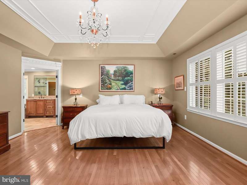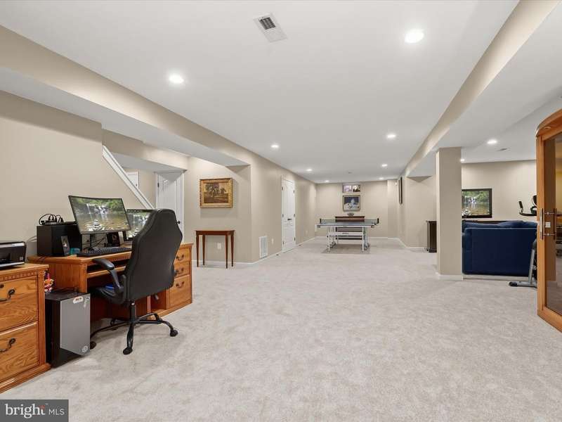 Welcome to 15300 Doe Hill Court, a spectacular Colonial residence tucked away in the prestigious Wellington West community. Brimming with timeless elegance and thoughtful design, this home showcases gleaming hardwood floors on the main and upper levels, along with classic moldings, and sun-drenched interiors that exude warmth and sophistication. Step inside the grand two-story foyer, gracefully framed by formal living and dining rooms adorned with custom trim work. Just beyond, an exquisite sunroom with soaring cathedral ceilings invites you to unwind while taking in serene views of the backyard. At the heart of the home, the eat-in kitchen is a true chef's delight, boasting granite countertops, decorative tile backsplash, under-cabinet lighting, a generous center island with breakfast bar, sleek appliances, and a stylish butler's pantry for effortless entertaining. The adjoining breakfast room fills with natural light and opens to the backyard deck, creating the perfect setting for morning coffee or al fresco dining. Flowing seamlessly from the kitchen, the dramatic two-story family room offers an impressive wall of windows and a cozy fireplace, ideal for gatherings both large and small. A private office with French doors, a convenient powder room, laundry room, and direct garage access complete the well-appointed main level. Upstairs, retreat to the luxurious primary suite, a private sanctuary featuring a tray ceiling, generous walk-in closet, and a spa-inspired en-suite bath complete with a soaking tub, glass-enclosed shower, and dual vanities. Three additional bedrooms and two full baths provide ample comfort for family and guests. The lower level is designed for versatility and entertainment, offering a sprawling game room, a bonus area perfect for an additional bedroom or home office, a full bath, and abundant storage space. Outside, discover an outdoor oasis with a tiered deck, custom patio, and secure storage all beautifully landscaped to provide a serene backdrop for outdoor living and entertaining.