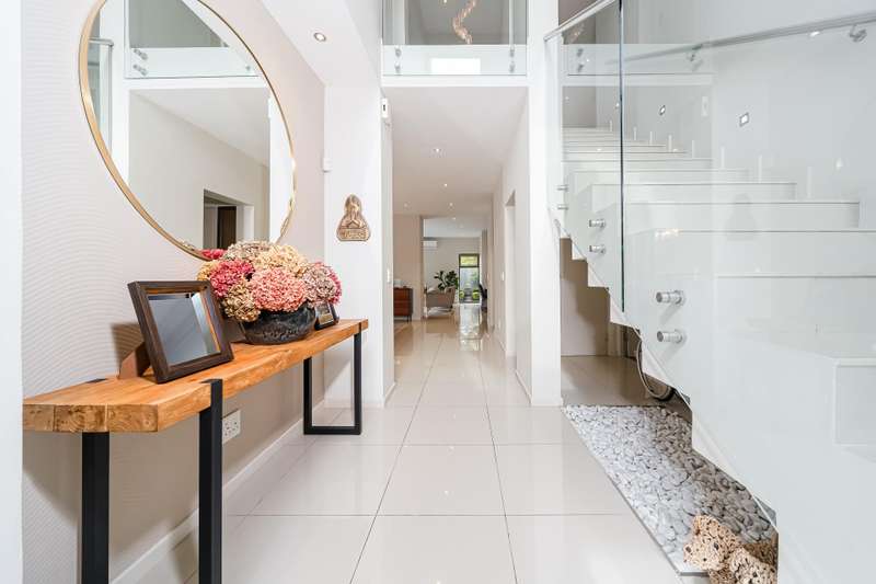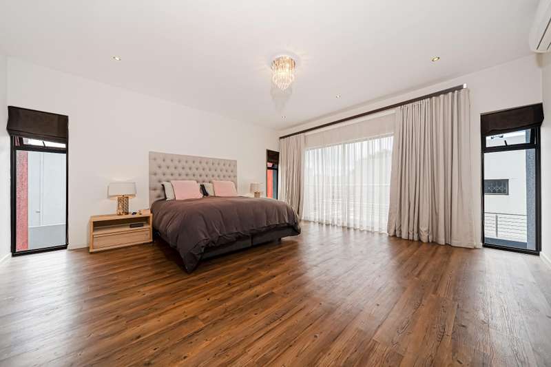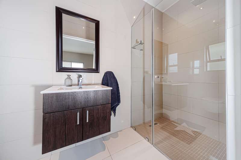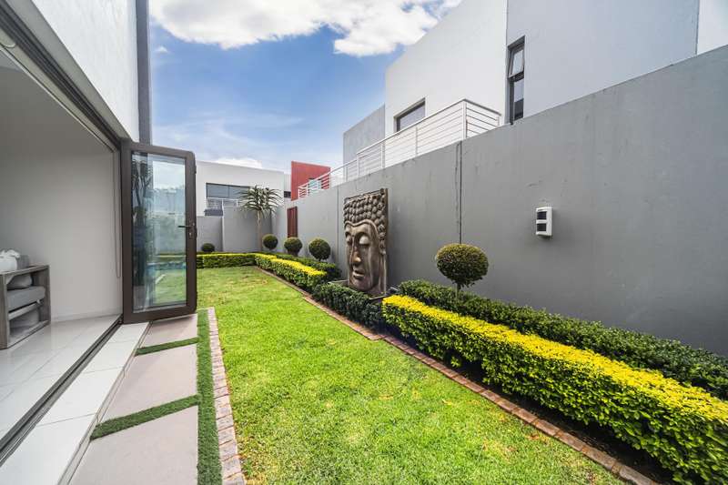 Entertaining is a pleasure with an open patio overlooking a neat garden and a refreshing pool. The outdoor space is an extension of the living area, providing a perfect setting for relaxation and social gatherings. The double garage offers secure parking for two cars, with additional space for two more, ensuring ample parking for residents and guests. The home features a study upstairs, catering to those who seek a dedicated workspace. A pyjama lounge adds to the comfort of the upper level, creating a cozy retreat for family members. The property also includes staff accommodation, ensuring that domestic needs are well attended to.