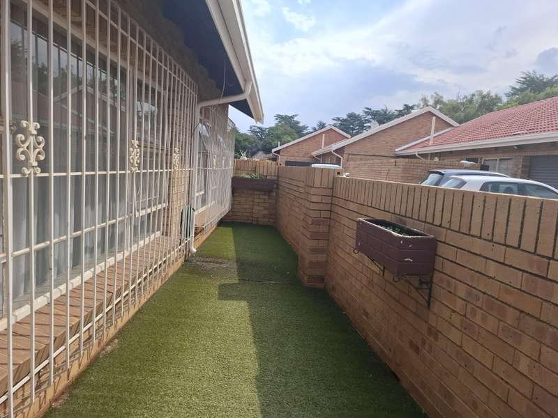 This stunning townhouse offers the following: 3 Spacious bedrooms – 2 with build in cupoards, Large open plan lounge and dining room with streams of natural light, Full bathroom – bath and shower. Separate toilet. Lovely kitchen with breakfast nook, and ample packing space. Single garage with door that opens up into garage. Kitchen opens up onto a beautiful low maintenance court yard in the front. Enclosed low maintenance garden in the back. Single garage. Carport. Situated in a very well maintained secure complex in a sought after area in Strubenvale. Fully walled & fenced with remote controlled gates for your security. Close to all amenities. Call today for a private viewing!