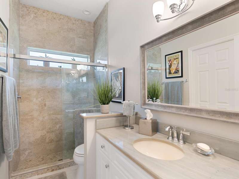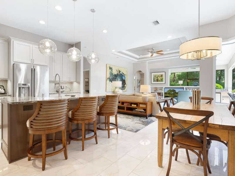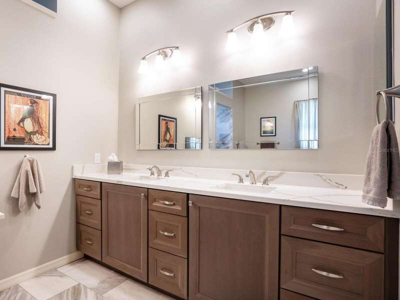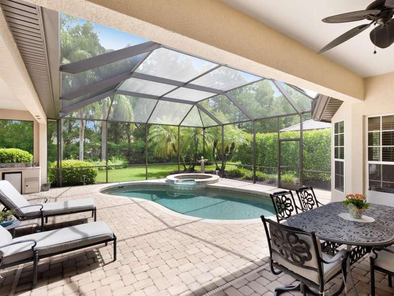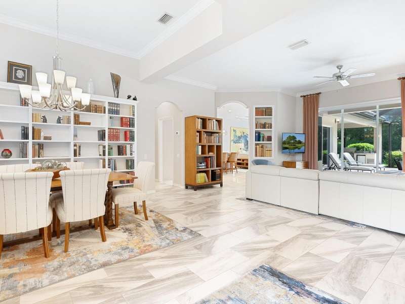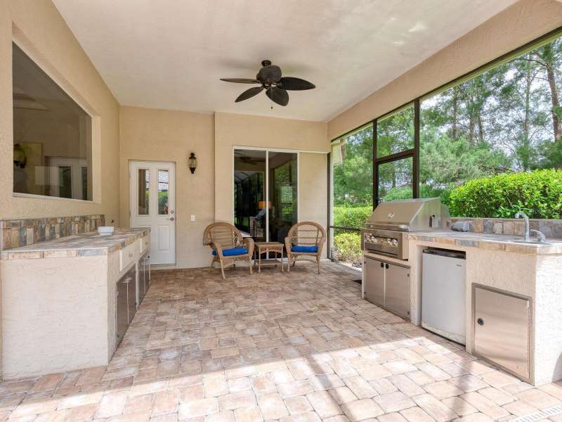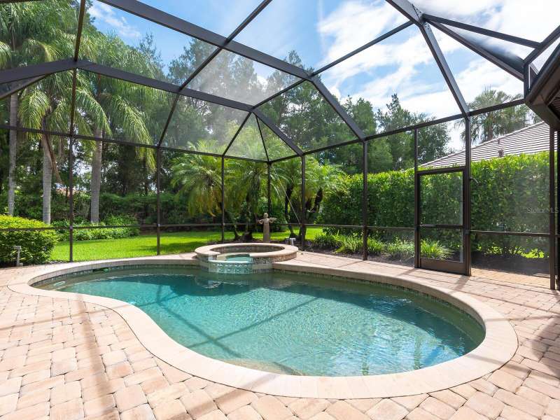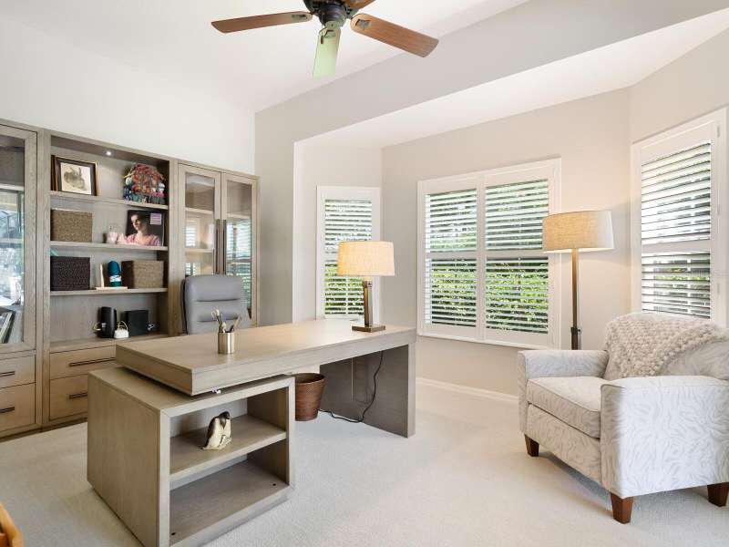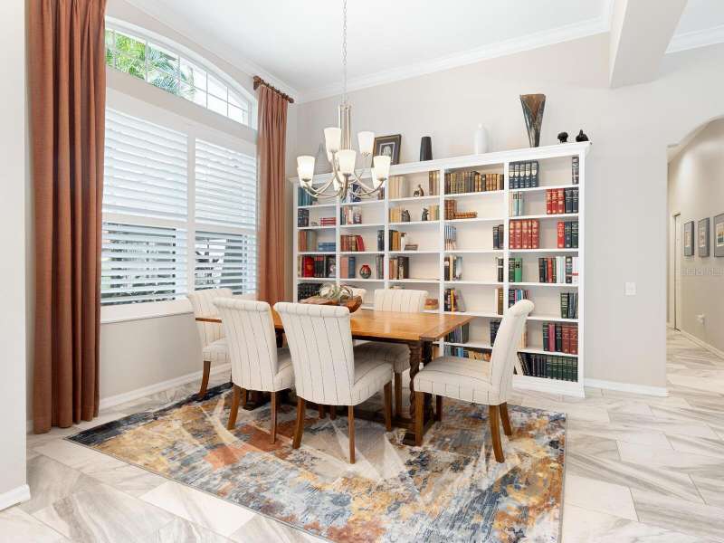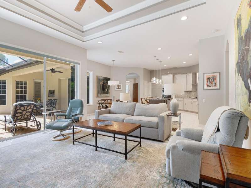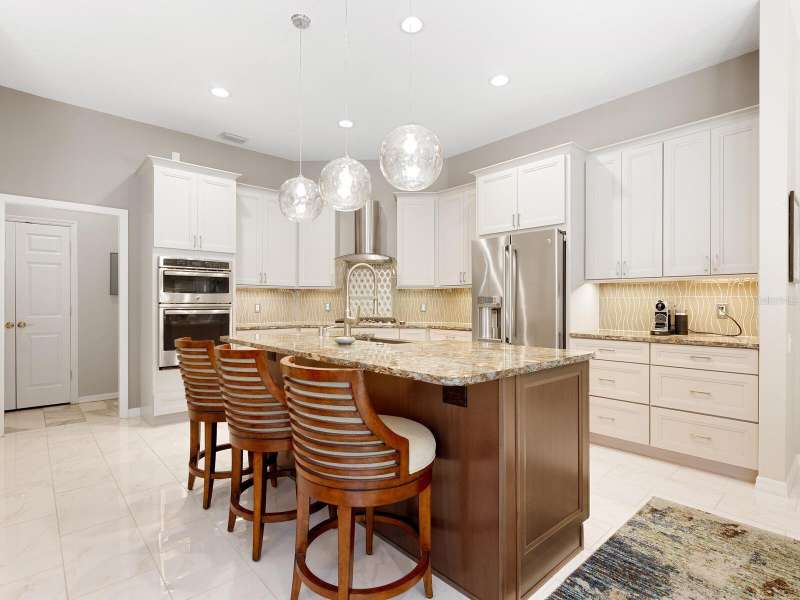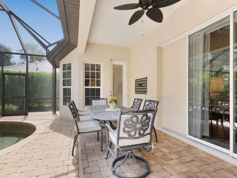 Under contract-accepting backup offers. Surrounded by impeccable lush landscaping and a stunning exterior elevation, this Lakewood Ranch Country Club home has true curb appeal and leaves a memorable first impression. From the moment you open the designer double doors, you will appreciate the well-designed floor plan and array of sophisticated appointments including elegant ceiling treatments, built-ins, crown molding, and updated porcelain tile flooring. Preparing your favorite meals is a delight from the well-appointed updated kitchen with staggered cabinetry featuring soft close pullouts, exotic quartz counters, designer glass tile backsplash, two pantries, stainless steel GE Café Series appliances, under cabinet lighting, a chair height island and charming dinette area perfect for enjoying your morning coffee. The spacious living room/dining room combination invites cheerful gatherings, while the rear office provides the setting for quiet study. The family room features a built-in media center with television all included while the masterfully crafted built-in at dining room blends form and function setting a refined scene for entertaining. You will look forward to retiring each evening to the master suite with sitting area, and newly renovated master bath with huge roman shower, two suited walk-in closets, window seat with storage, and gorgeous make-up vanity - quite simply fit for royalty. Sleek sliding doors from living, family room and office open to the generously-sized heated Pebble-Tec pool with spa and paver deck. The outdoor kitchen features new Vintage 36” grill with refrigerator and expansive preparation area making outdoor entertaining effortless. Both guest bath and pool bath have also been updated to include wood cabinetry, granite counters and designer tile. Other features include large storage closet in hall and epoxy garage floor. Located in one of the original Lakewood Ranch Country Club communities, this home is a bike ride to the athletic center and is within easy reach of miles of peaceful nature trails and parks and just a short distance to the Main Street lifestyle shopping district and UTC Mall.