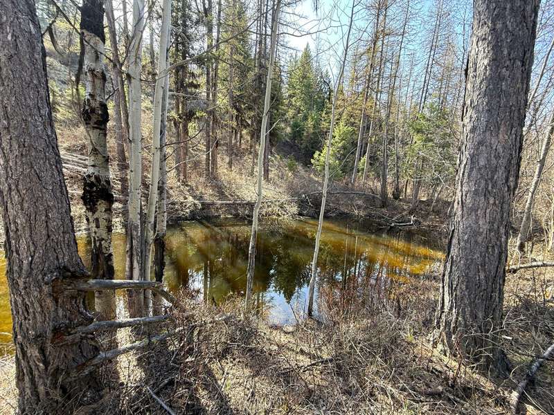 Fairly heavily timbered acreage with a creek. This property is made up of varied terrain with multiple building sites. A very rustic cabin sits perched towards the top of the property next to a pond. Huge views from the top and very private. Excellent hunting area with a mix of white tail and mule deer.