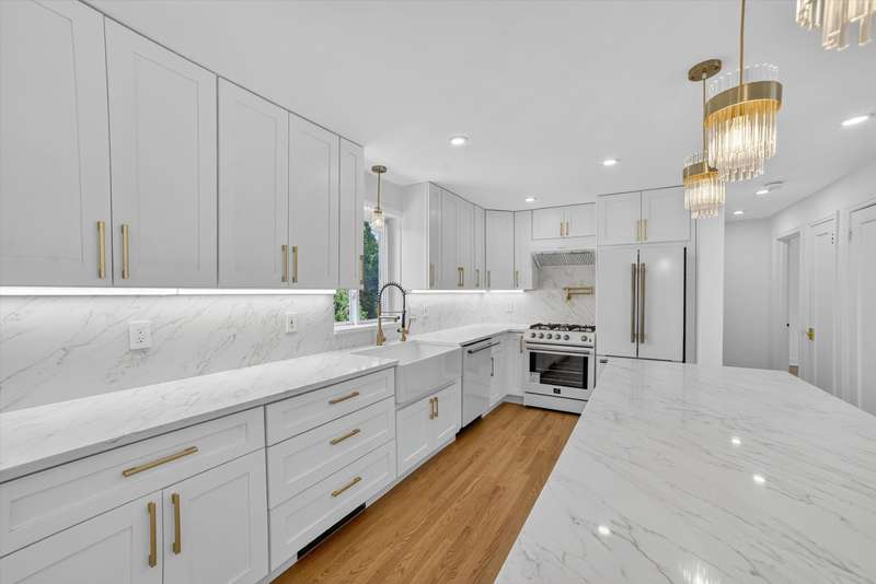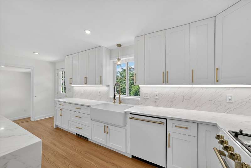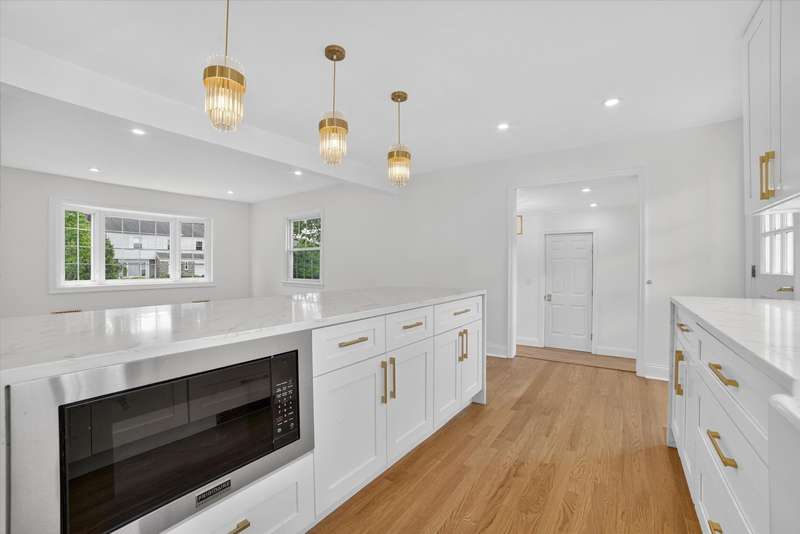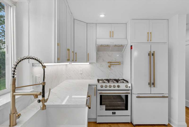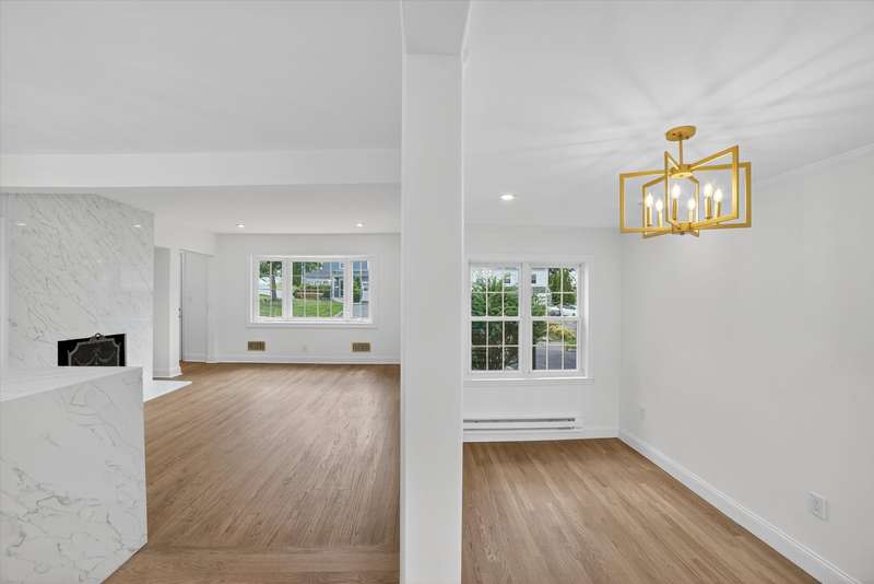 Welcome home to Luxurious Leewood Living! Custom renovated like NEW home & you won't want to leave. This prestigious corner cape colonial invites you into an open concept sun drenched living room with bay window, accented with a floor to ceiling marble fireplace - open kitchen floorplan with marble waterfall center island. The influenced gold trim kitchen has imported Italian appliances - FORNO. Instant stove top hot water. Farm sink with gold kitchen faucet. Kitchen gold cabinetry hardware and gold accent light fixtures. Enjoy a Bonus home office with separate entrance/ baseboard heating and separate wall AC system. The 1st floor modern Primary Bedroom Suite offers a spa like bathroom with dual sinks, deluxe marble walk-in shower & spacious custom walk-in closet. Hall half bath. The upper level has 2 additional bedrooms and a Full Hall bath w/ bathtub & closet and additional linen hallway closet. The lower level (additional 544 sq ft ) offers endless ideas for your finished storage space: home gym / family room, etc with half bath, separate laundry room & separate utility room. Home offers deluxe recessed lighting & hardwood floors. Enjoy a private romantic dinner for 2 or family BBQ's on your backyard private patio. This community neighborhood home is a 7 min walk to the Crestwood Metro North train station and nearby village has restaurants such as Rio Bravo, Crestwood Pizza & Stephens Green or quick bites at Martines Cafe or Bagel Loft and Eastchester's newest park is located in Leewood Park just built in spring of 2025 located on Leewood Drive where your family can enjoy 6 tennis courts, 4 pickleball courts, 2 basketball courts, 3 bocce courts, children's playground, t - ball field & designated workout area. Also available is residents' membership at Lake Isle Country Club which offers 5 age-appropriate pools, Golf- Golf Pro-shop, Tennis & Pickleball courts, snack bar & onsite Gigante's / Mulino's Restaurant for all to enjoy. This is a commuter's dream - prestigious walkability neighborhood. Note: total house sq ft = 2060 sq ft (refer to Floor plan )