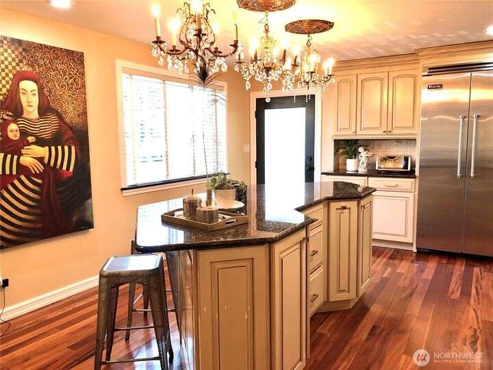 Beautiful trophy mansion, zoned Neighborhood Commercial, across from the beach near Alki Point. Views are protected due to location across from city property (Weather Watch Park). Protected views, superior design and décor, perfect for owner occupant, guest home (AirBnb or VRBO) or hold for future development (current zoning also indicated L3). Located in a small enclave of commercial, residential & multi-family zoning ,this property presents a multitude of opportunities. Current use is owner occupied with occasional short term rental (up to $500 a night) with possibility for higher occupancy. Could be art gallery, wine tasting or coffee shop? Was zoned and used as a triplex, currently a duplex w/2 meters.
