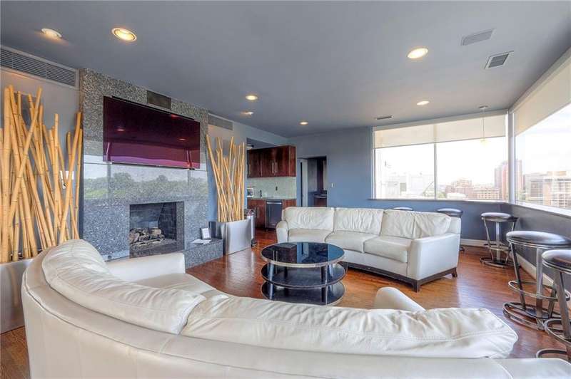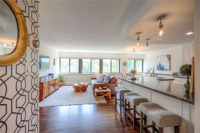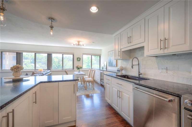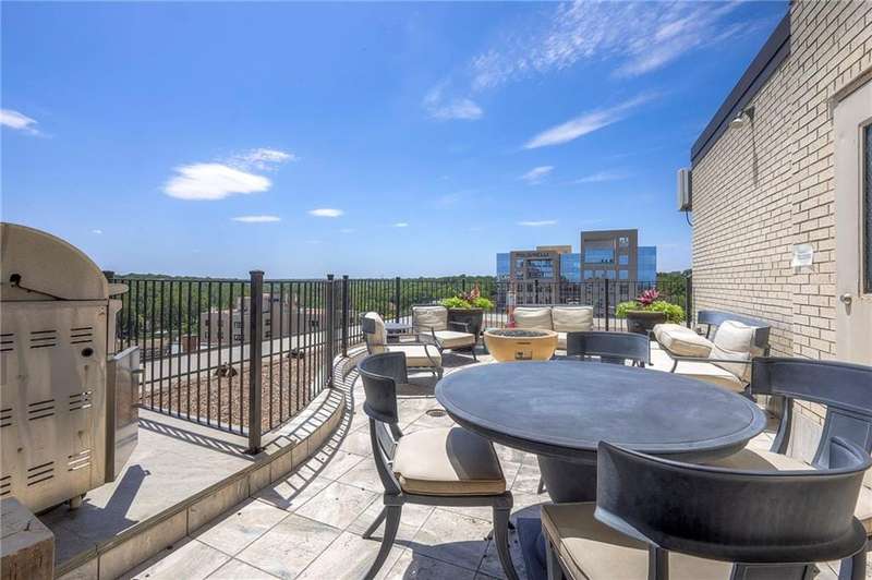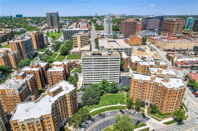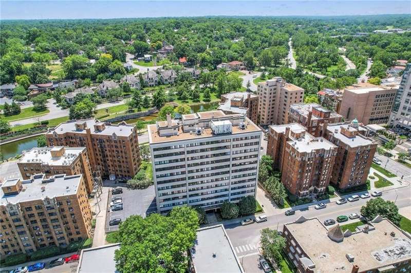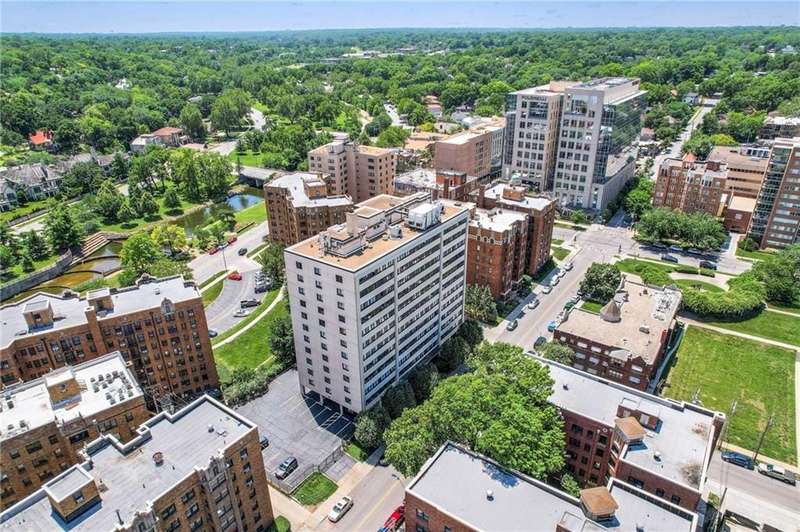 Stunning Plaza Corner Unit with Views, Designer Finishes & Garage Parking in the Winston Churchill Building!Welcome to this exquisitely renovated corner residence in the coveted Winston Churchill Building, perfectly situated just off the Country Club Plaza on a charming side street. This Perfect 10 combines luxurious city living with comfort, style, and unbeatable convenience. Step into a light-filled, open-concept floor-plan that impresses from the moment you enter. With nine oversized, south-facing windows, this home is bathed in natural light and offers panoramic views of Brush Creek and Ward Parkway. Enjoy designer finishes throughout, including custom smart shades, designer paint, and elegant hardware that elevate every room. Remodeled chefs kitchen is ideal for entertaining, featuring: Honed granite countertops, marble backsplash, custom cabinetry, stainless-steel appliances, oversized bar with seating, additional custom built-in and bar in the separate dining area for ample storage. Spacious great room is perfect relaxing or entertaining! Serene and spacious primary bedroom has extensive windows with custom shades and expansive closet space. Spa-like bath features modern tilework, stylish fixtures, and ample storage. With in unit laundry and six generous closets throughout convenience and storage is never an issue. Additional highlights include: Highly sought-after assigned underground garage parking, in-unit laundry, Google Fiber ready, and hardwood flooring. The Churchill building offers premium amenities, including a rooftop terrace with breathtaking views, community room for entertaining or relaxing, fitness center, and secure entry. This well designed and fully renovated unit is ideal for year-round living or a luxurious second home, just steps from all the dining, shopping, and entertainment the Plaza has to offer and perfectly located to the first phases of the planned Poet's Alley Country Club Plaza renovations.