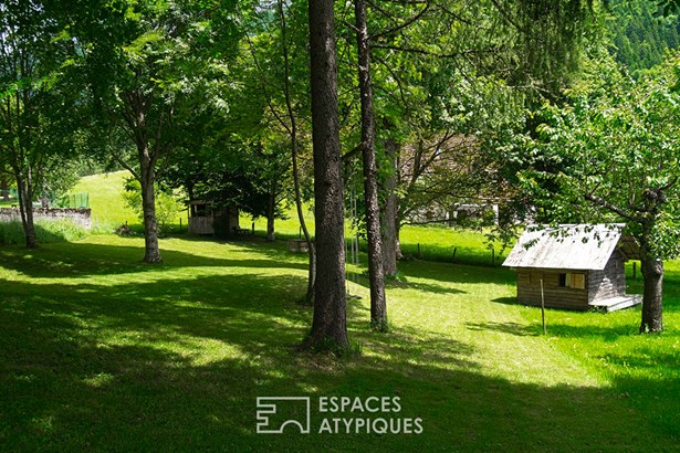 The second part, gained from the original outbuildings, also takes up, with its many wooden reminders, the codes of high-altitude properties. More open, with its harmonious double-height volume, more refined and more contemporary, it offers a beautiful contrast with the previous place. Accessible from the garden by an external staircase, it is composed, on three levels, of an attractive living room with kitchen, a pleasant mezzanine, four beautiful bedrooms, a shower room and at the top, an attic space ideal for children. On the ground floor, a bathroom with its laundry area, toilets, a workshop and a large shed complete the property and offer the essential storage and storage rooms.