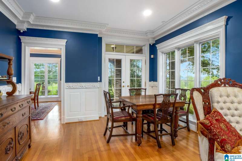 This 140 +- acre estate is stunning. Two ponds with 1200 feet of water frontage, 1 pond is 2.64 acre and 1/2 acre. Acres of beautiful pasture land and wooded acres. The stunning Tudor home showcases exquisite architectural details and craftsmanship. It features a Honduran mahogany staircase entry and marble flooring with brass inlay. The grand living room boasts a hand-carved mantel, while the kitchen opens to a two-story coffered ceiling great room with a grand fireplace. The second floor offers a spacious master suite with a jacuzzi tub and steam shower, additional bedroom suites, and a loft. With superior features like a central vacuum system and geothermal HVAC, this home includes a large attic bonus space, 2-car main level garage, and full basement with an oversized garage. Outside, an English patio with a koi pond, fountain, and gardens adds to its charm. Set on 140+- acres, the possibilities are endless.