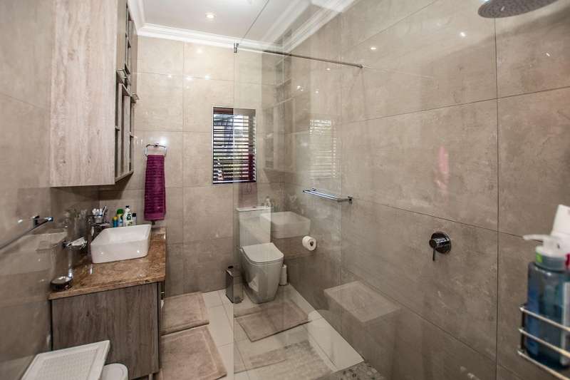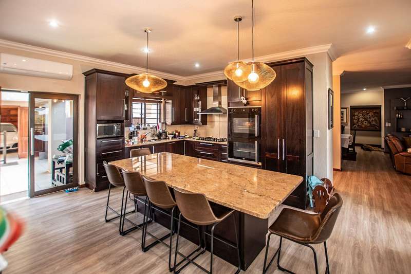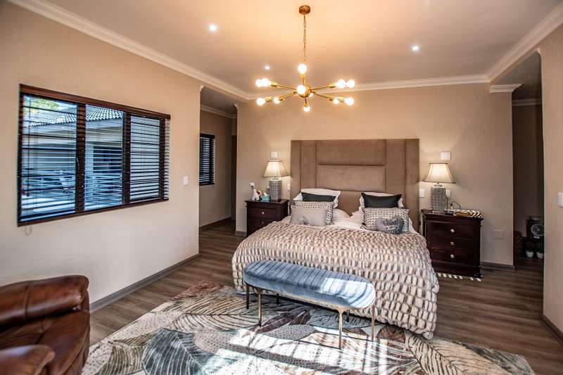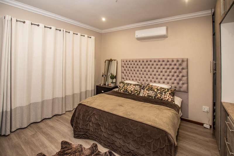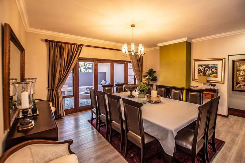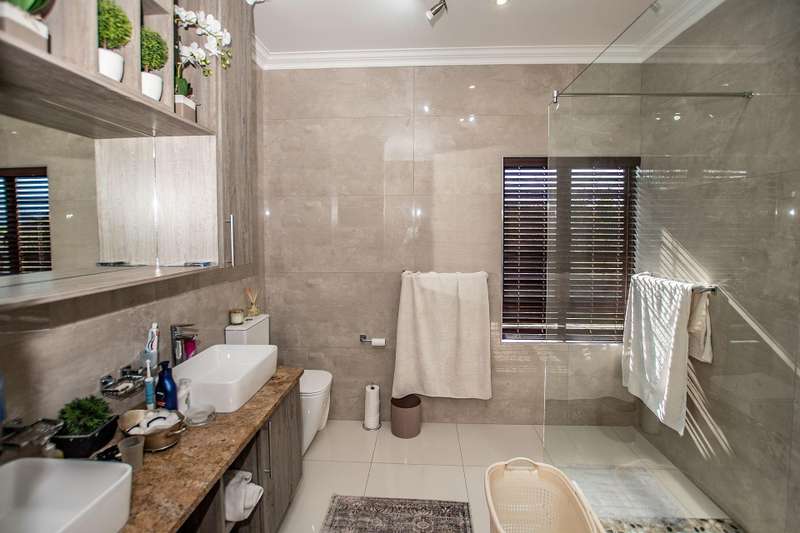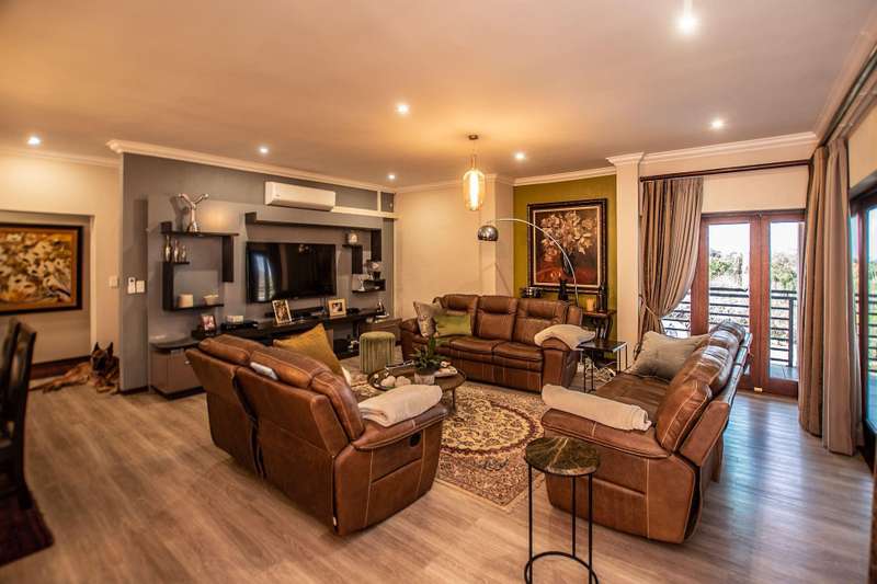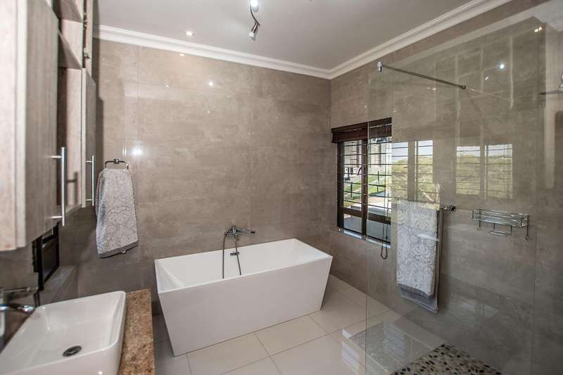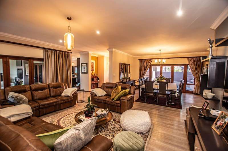 Set in ever popular Shandon Estate on a 1, 19 ha stand, this immaculate double storey executive home boasts a feature entrance which flows into generous open plan TV room and dining room with outside boma area which fuse effortlessly with a granite clad kitchen with gas stove, separate scullery and pantry and out onto a large covered patio with views. The upper level further hosts 4 spacious bedrooms with ample cupboards spotless modern bathrooms ( main en suite with walk in dressing room ) and linen room. The lower level offers a full guest suite with separate pyjama lounge and spills out onto a games room, storeroom and sparkling swimming pool. Other attractions include 5 extra sized automated garages and outside laundry and the established garden is fenced to keep your pets secure. Shandon Estate is renowned for upmarket homes, top security and infrastructure and large green belts and plains with roaming game. Located on the outskirts of Nelspruit within a few minutes?ÇÖ drive of Mbombela Golf Club, De Hallen and Valley Hyper developments and the Nelspruit Cbd.