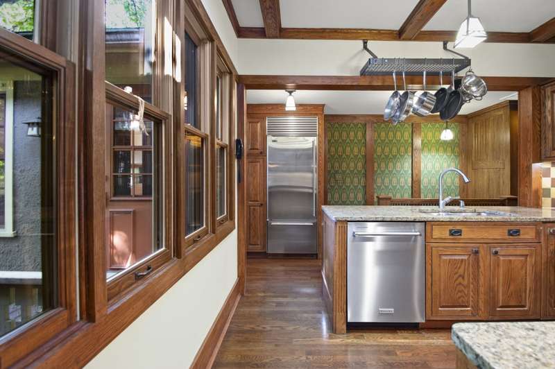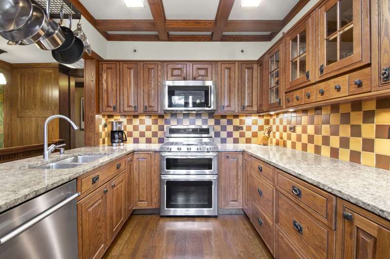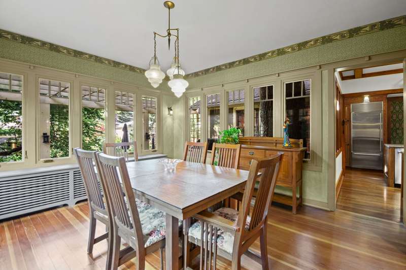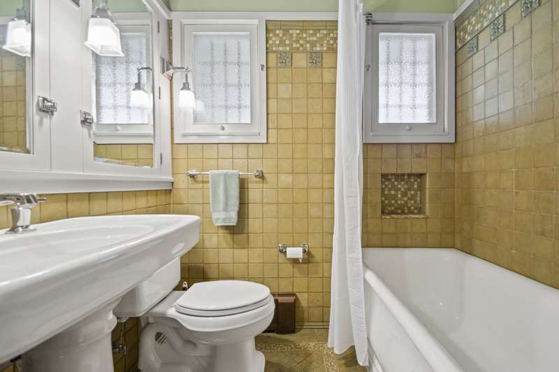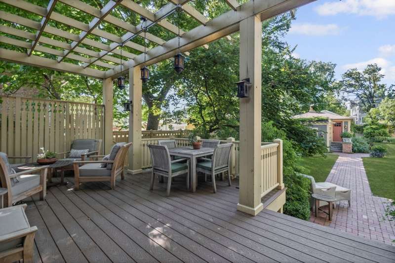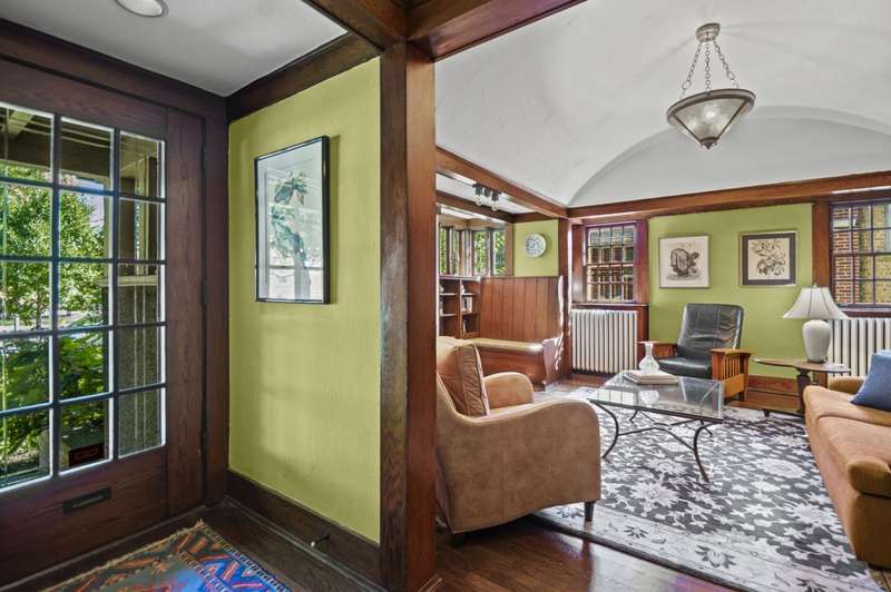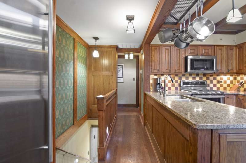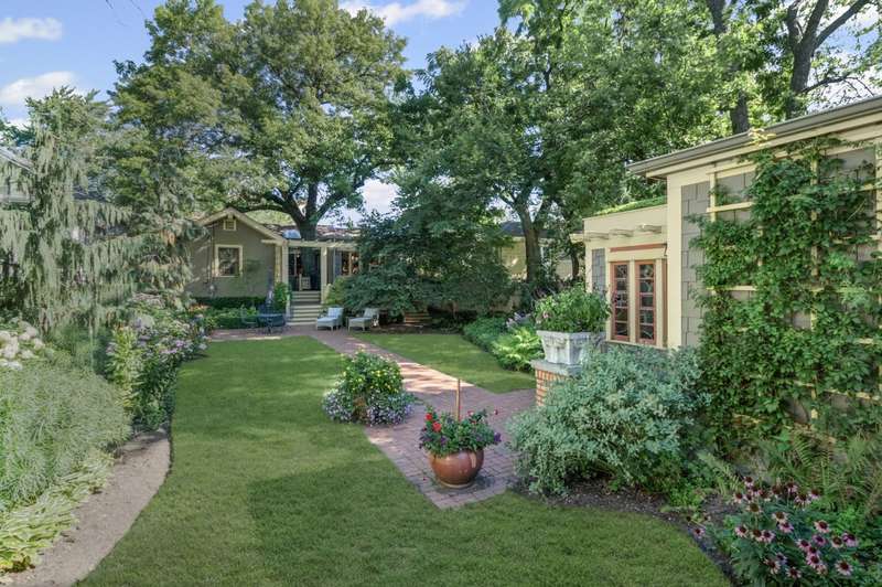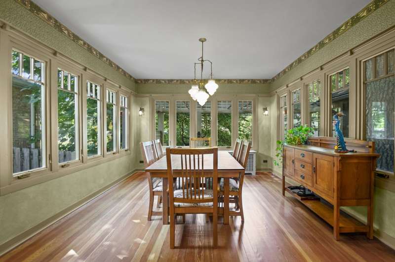 This rare 1911 Craftsman-Style 3 BR / 2 BA bungalow is a true gem in West Ridge, unlike anything else on the Far North Side. Built around a towering red oak tree, this U-shaped stucco home features striking architectural details by renowned architect George W. Maher. Post-and-beam entry porch opens to a barrel-vaulted foyer and living room that make a dramatic first impression with natural oak woodwork, original leaded glass windows and an inglenook gas fireplace with built-in oak benches and bookcases. Separated by French doors, the bright dining room is surrounded on three sides by casement windows, filling the space with abundant natural light. Renovated kitchen offers oak cabinetry with glass-front doors, granite countertops, and a square tile backsplash, complemented by Arts and Crafts inspired pendant lighting and decorative borders, along with a Sub-Zero refrigerator and SS appliances (oven, dishwasher, microwave less than 5 years old). This home was made for entertaining! A back door off the kitchen opens to a generously sized Trex deck (new in 2023) and a beautifully landscaped backyard. The spacious outdoor area features a brick paver patio, tranquil pond, potting shed and a two-car garage - perfect for gatherings or everyday enjoyment. All three bedrooms are generously sized and conveniently located on the first floor, along with a full bathroom - renovated in 2010 to complement the home's vintage charm with the original tub, pedestal sink, classic subway tile, and sconces. Light-filled lower level features an expansive family room w/decorative fireplace and built-in bookshelves (perfect as a home office or additional bedroom), full bath with walk-in shower, large laundry room with chute and ample storage. All big projects are already done for you - roof (2018), water heater (2021), boiler and central air (2022). Only minutes away from Indian Boundary Park, local grocery stores, restaurants, CTA and just 5 blocks to the Metra. This home is meticulously maintained and thoughtfully designed, this remarkable opportunity should not be missed!