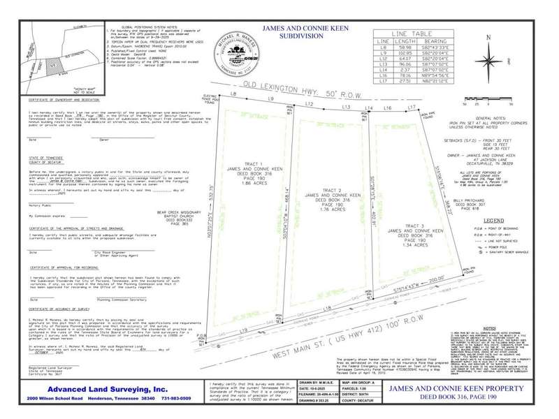 1.86 Acre Commercial Lot in the City of Parsons! Located on busy HWY 412 W/West Main St, this property has approximately 170 feet of HWY 412 frontage and 160 feet of Old Lexington HWY frontage-shown as Tract 1 on survey plat. All city services available. Also available is Tract 3 with 1.34 acres. Zoned commercially with excellent visibility & accessibility, this is a unique offering in the busy little Southern TN River Town of Parsons. Located 15 mins to I-40 between Memphis & Nashville and 5 miles to the Tennessee River!