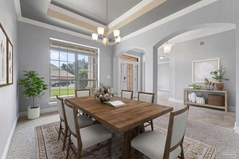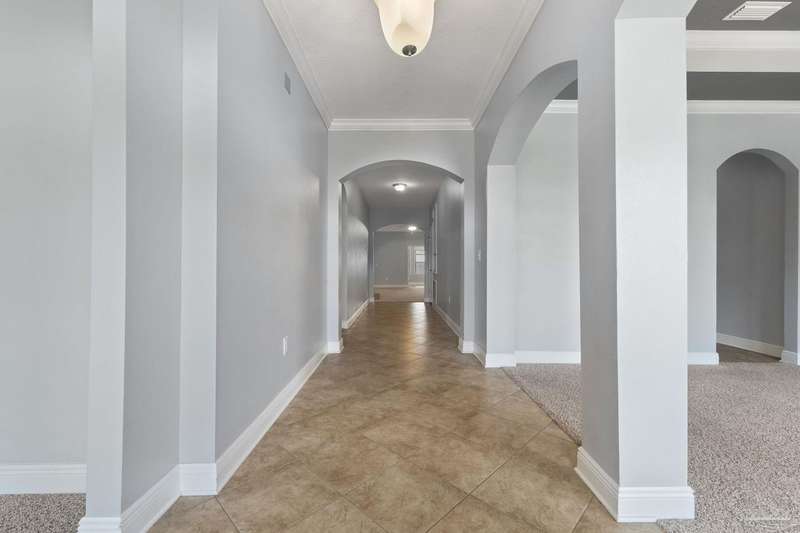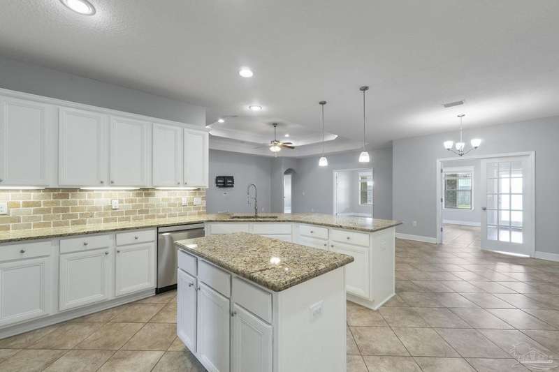 Location! Location! Location! Immaculate all-brick home in the heart of Pace at Spencer Ridge! This spacious 5BR/3BA split floor plan features a gourmet kitchen with granite countertops, stainless steel appliances, island, and walk-in pantry. The great room boasts tray ceilings, crown moulding, wood burning fireplace, and surround sound. Large primary suite includes dual vanities, soaking tub, and separate shower. Enjoy the extended great room, covered front and back porches, fenced yard, and a 24x14 powered workshop/shed. Located on a quiet �½-acre lot near top-rated schools, shopping, and NAS Whiting Field.