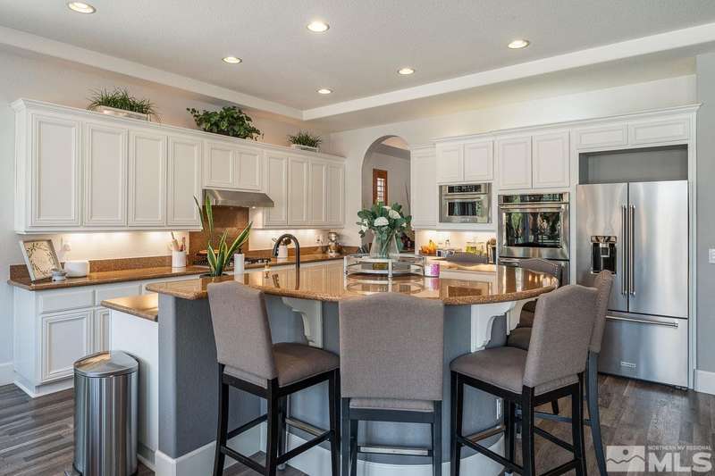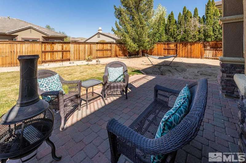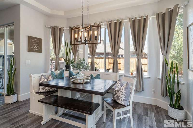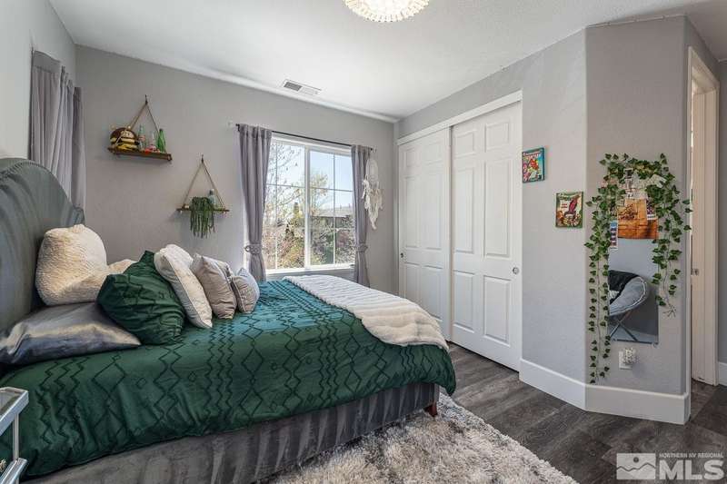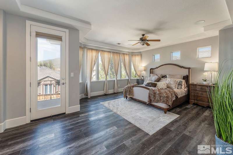 The entry foyer has all the WOW factor leading to this Elegantly designed 4 bed/4 bath home in the gated Damonte Ridge! One bedroom is conveniently located downstairs, also suitable for an office/Den or mother-in-law suite. The Iron spindle staircase paves the way to the Primary Suite. The additional 2 bedrooms are mini-suites with their own bathrooms. The colossal bonus room is ideal for a playroom/gym.The LVP floor has a modern grey accent and the granite slab Kitchen Island is impressive!, Additional features include, Swim Spa in the backyard in Great condition, Jacuzzi jetted tub in the Primary Bedroom and split his-and-her sinks. Custom shelving in bedroom closets, custom window coverings, and wood plantation shutters in the family room and downstairs bedroom. The family room and bonus room also boast custom built-in entertainment cabinets, and the bonus room includes a built-in office desk and cabinets. For your convenience, a storage shed, kitchen fridge and washer dryer and swim spa are included in the price