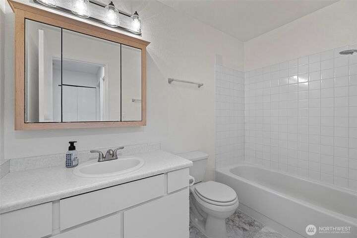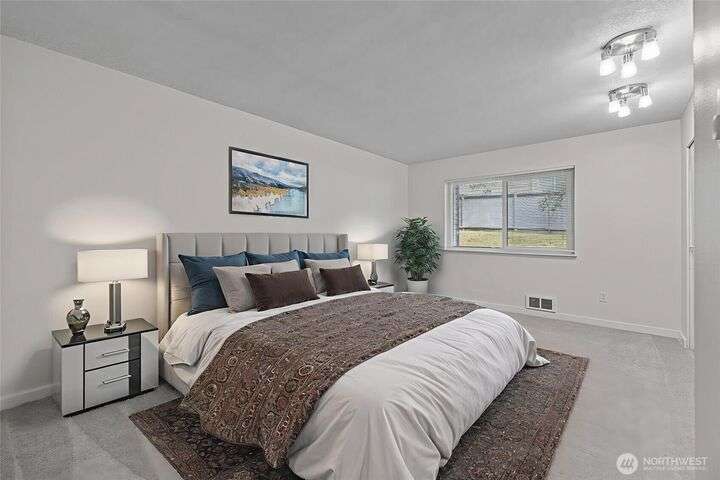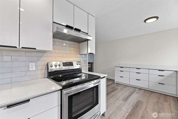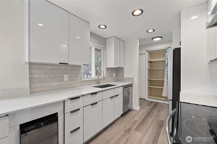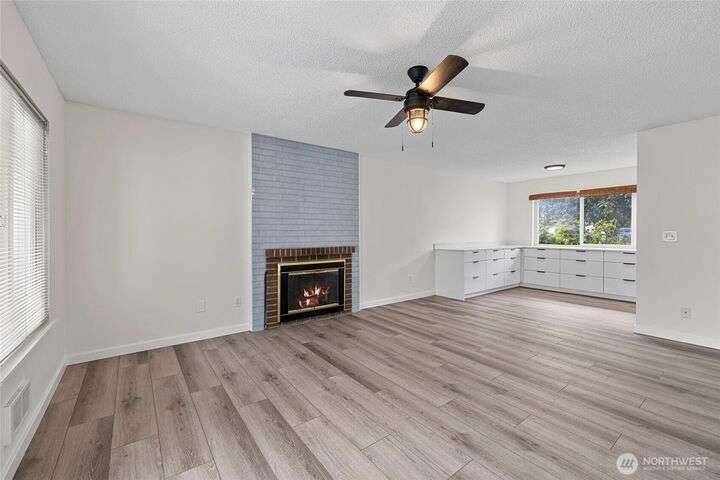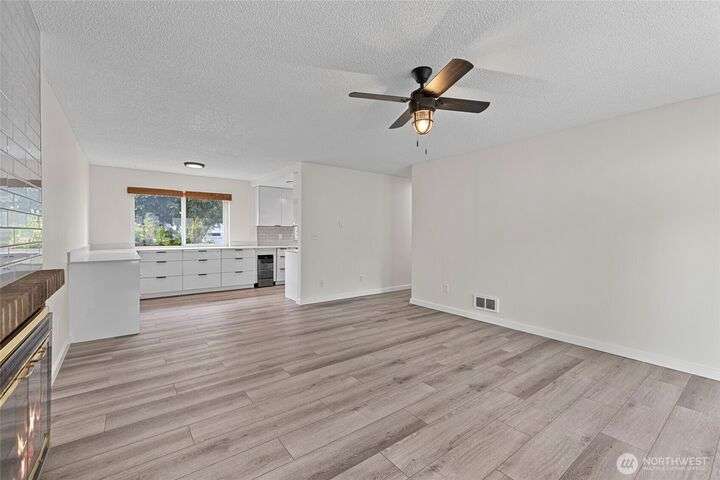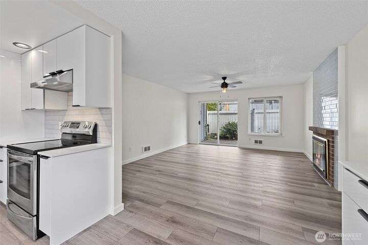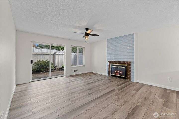 [Welcome home!] This ground floor, corner unit has over $55k+ in updates & is turn-key ready for you! BEAUTIFUL kitchen with a plethora of glass front, soft close cabinets, Quartz countertops, tile backsplash, Stainless Steel appliances, wine cooler, large pantry + room for a bistro table! Enjoy the LVP flooring thru living space, cozy wood burning fireplace with brick hearth & floor to ceiling tile surround. Slider to private back patio w/ gardening space. Massive Primary bedroom large closet space, attached bath w/ walk-in shower. Generous sized main bathroom w/ tiled shower/tub combo. All new interior paint, flooring + so much more all on one level! Close to Boeing & Paine field & all retail + restaurants. Don't miss out on this one!