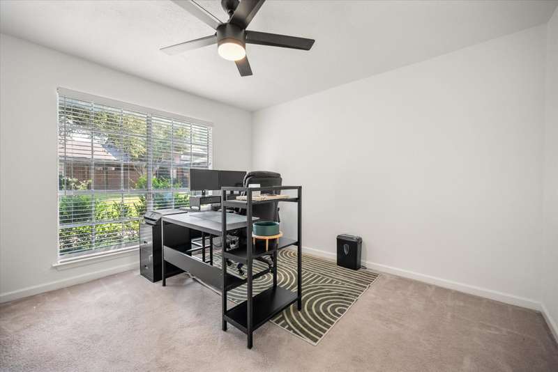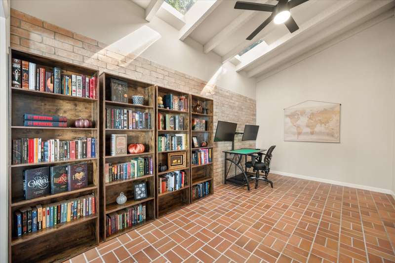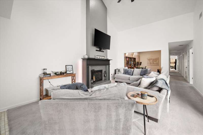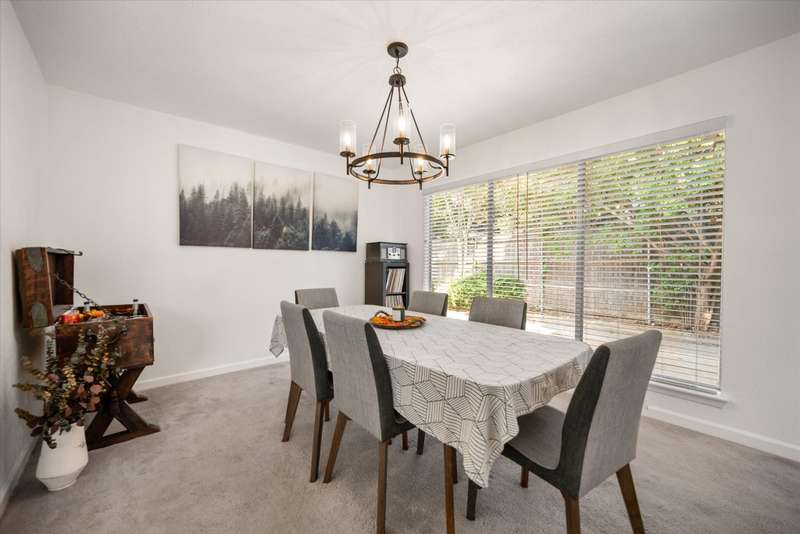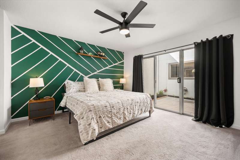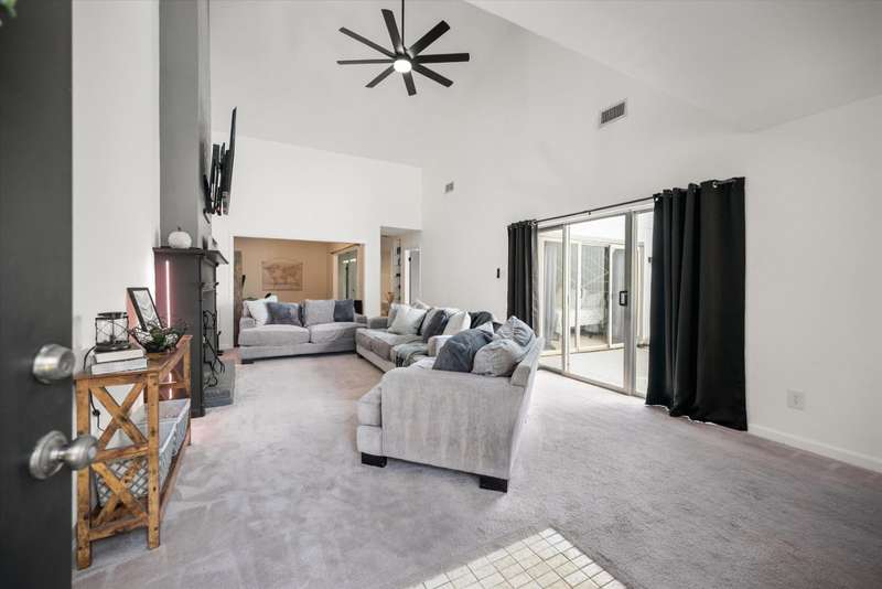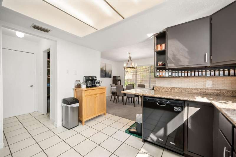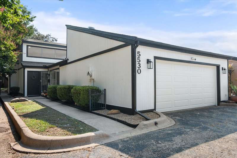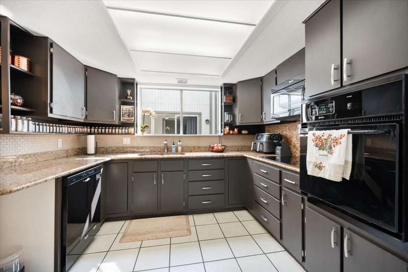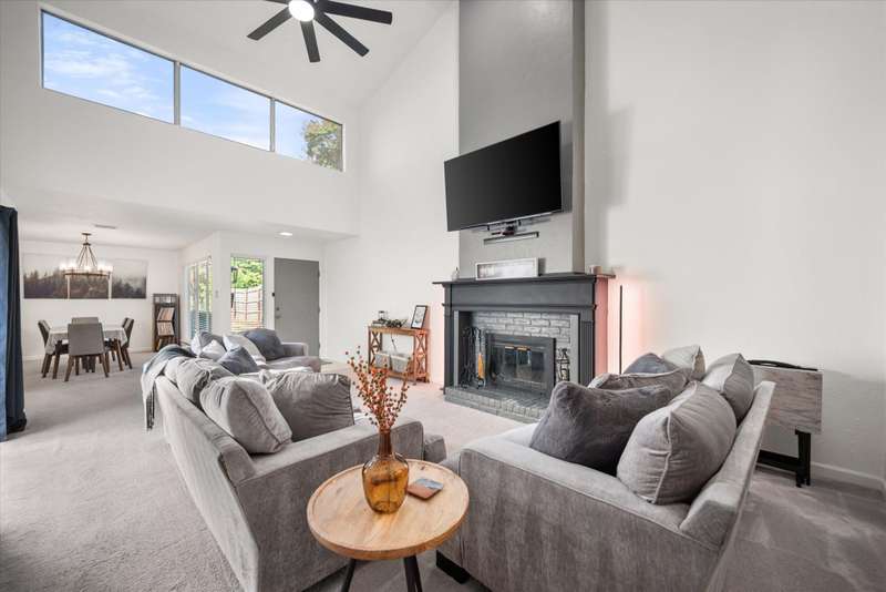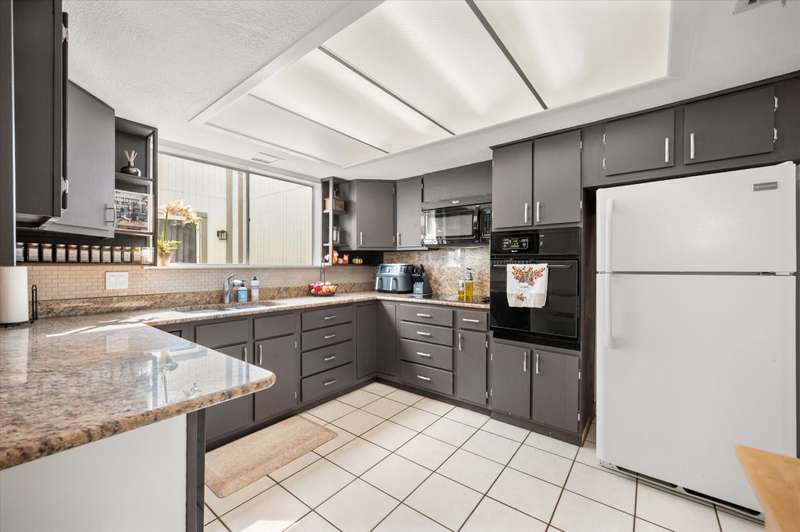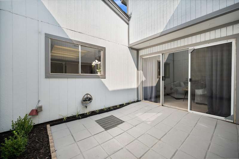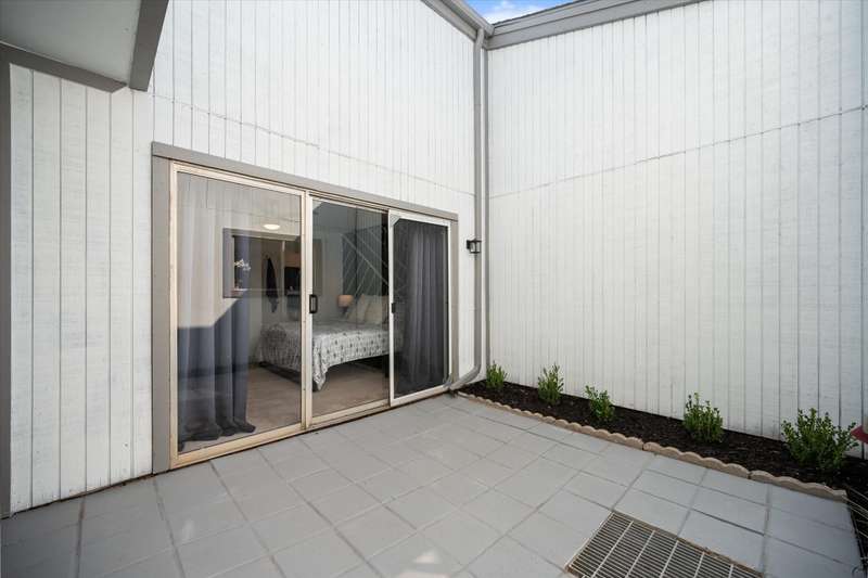 This beautiful single story contemporary townhome with dramatic soaring ceilings, open and spacious floor plan and light-filled rooms is waiting for you! You will love basking in the tranquility of this charming outdoor space and the freshly landscaped courtyard. This end unit offers privacy and is located just a few steps away from the community pool when accessed through the back door. The kitchen features granite counter tops and overlooks the patio. The oversized garage includes an insulated garage door and 2 large storage closets. You will appreciate the many recent upgrades to this special home: roof replaced in 2025, new shower in second bath in 2025, fresh interior and exterior paint in 2025, landscaping in 2025, resurfaced fireplace in 2025, replaced interior and exterior HVAC unit (heat pump) in 2022, breaker box in 2022, electrical switches and outlets in 2022. Make an appointment to see today!