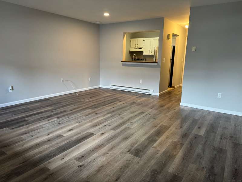 No stairs, assigned parking right in front of the unit and just steps away from the brand new pool! This 1 bedroom, 1 bathroom main level Ranch style unit at popular Lakewood Condominium complex in Danbury offers 882 sqft of living space and includes a spacious living room and dining area combo with luxury vinyl flooring and fireplace, a galley style kitchen with white cabinets, tile floor, and newer stainless steel appliances, an updated full bath with tub, and a primary bedroom with a large walk-in closet, luxury vinyl flooring and sliders to a private patio. This unit has been freshly painted including walls. ceilings and trim and is move-in ready! It is being sold "as-is" and subject to final probate approval. The complex offers an in-ground pool, and plenty of visitor parking and low common charges that INCLUDE Sewer and Water! A great unit that won't last....Hurry!