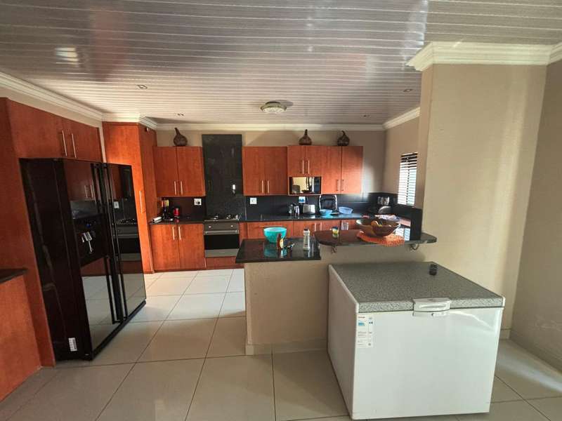 Nestled within the prestigious and highly sought-after estate, this exceptional upmarket property offers the epitome of luxury living. Boasting a total of 5 spacious bedrooms, 3 modern bathrooms, 2 convenient garages, 3 covered parking spaces, and an additional 2 open parking areas, this home is designed to cater to a lifestyle of convenience and sophistication. As you step through the entrance hall, you are greeted by a stylish and inviting interior that features a range of high-end amenities. The property includes custom features such as a solar geyser and a gas stove, showcasing a commitment to eco-friendly and efficient living. The expansive layout of this property includes 2 lounges, a family/TV room, and a separate dining area, providing ample space for both relaxation and entertainment. The open-plan kitchen is equipped with top-of-the-line appliances and built-in cupboards, perfect for culinary enthusiasts. Outdoor living is equally impressive, with a beautifully landscaped garden, a lapa with a built-in braai, a patio for al fresco dining, and a sparkling pool offering the ideal setting for outdoor gatherings and relaxation. The property also features an irrigation system to keep the garden looking lush and green all year round. Security is paramount in this estate, with 24-hour security, access control, an alarm system, security post, and a fence ensuring peace of mind for residents. In addition, there is a backup water system in place to ensure uninterrupted water supply during any unforeseen disruptions. Other notable features of this property include 2 en-suite bathrooms, a guest toilet, a laundry room, ample storage space, and air conditioning throughout the home for added comfort. The property also allows pets, making it a perfect home for families with furry friends. With scenic views enhancing the overall appeal of the property, this upmarket estate home offers a luxurious lifestyle in a secure and exclusive setting. Don't miss the opportunity to make this exceptional property your own and experience the ultimate in upscale living.
