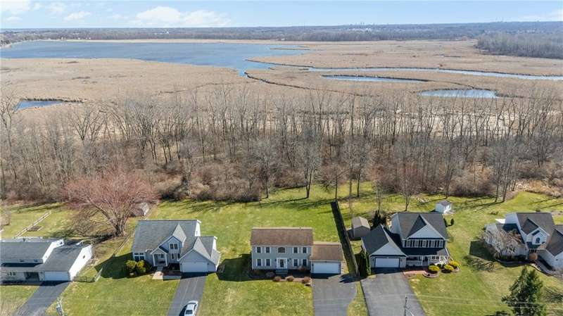 *Welcome Home to this Beautiful 3-Bedroom, 2.5-Bath Colonial! *Nestled on Long Pond Rd, this Home Offers Serene Waterfront Views & Backs Up to Beautiful Buck Pond! *The Spacious Kitchen is Elegant, Functional & Perfect for Entertaining! *This Beautifully Appointed Space Features Sleek Countertops, Plenty of Cabinets and a Spacious Breakfast Bar, Creating the Perfect Spot for Casual Meals, Morning Coffee, Or Lively Gatherings! *Natural Light Pours, Highlighting The Open-Concept Layout That Seamlessly Flows Into The Dining & Living Areas! *The Gas Fireplace adds Warmth & Ambiance! *New Hardwood Flooring, Carpets & Custom Window Treatments Add Comfort & Style Throughout! *Step Out onto the Large Walkout Deck & New Paver Patio Perfect for Entertaining & Enjoying the Views! *Relax in the Primary Suite Complete with Full Bath & Elegant Tub Surround & a Private Balcony Offering Scenic Views of the Backyard! *Partially Finished Walkout Basement adds Extra Storage Space & Endless Possibilities! *Two-Car Attached Garage with a Double-Wide Driveway For Extra Parking! *Maintenance-Free Vinyl Siding & Recent Upgrades Include a Total Tear-Off Roof (2017) & 200-Amp Electric Service! *Enjoy the Convenience of Being Minutes from Lake Ontario Parkway, Marinas, State Parks & Local Restaurants & Shopping! *Explore The Scenic Nature Trails Leading To Buck Pond! *This Home is a Perfect Retreat for Relaxation & Entertaining! **OPEN HOUSE SAT, SEPT 27TH 1:00-3:00PM**