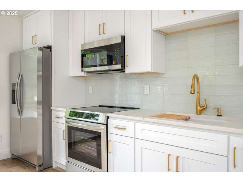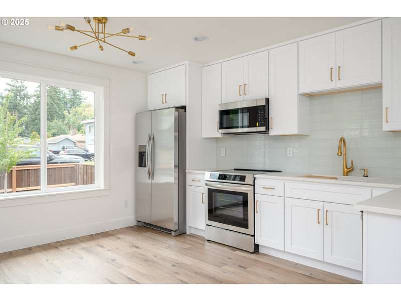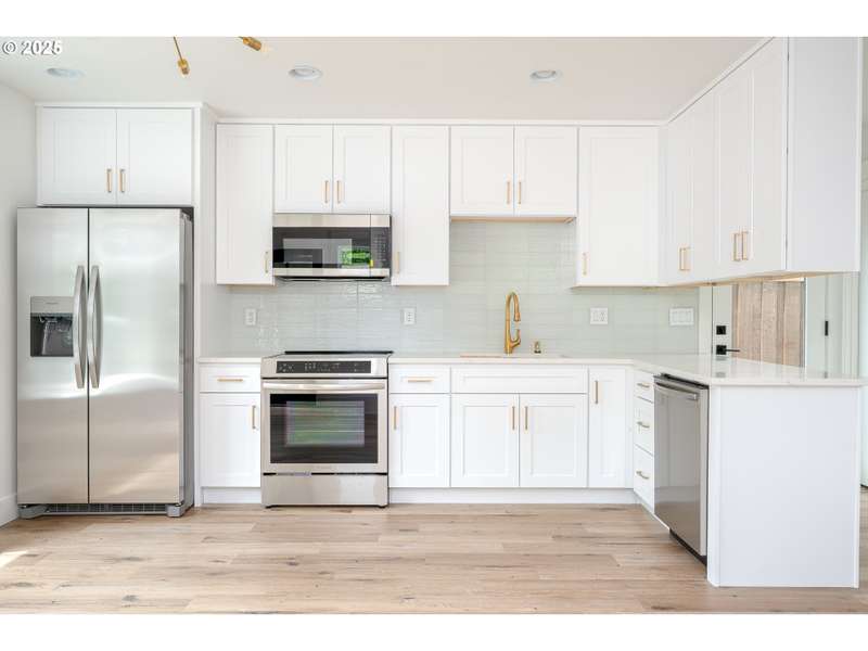 Elegant New Construction Cottage in Milwaukie.... Step into timeless design and low-maintenance living with this brand-new detached condo in the heart of Milwaukie. Whether you're a first-time buyer or looking to downsize, this thoughtfully crafted 816 sq ft home is the perfect blend of comfort and sophistication.Features You'll Appreciate: 2 bedrooms | 1.5 bathrooms. Open-concept main floor with great natural light. Sleek all-white cabinetry paired with elegant gold fixtures. Granite countertops and stainless steel appliances. Durable luxury vinyl plank flooring throughout. Includes refrigerator, washer, and dryer—move-in ready. Convenient main-level half bath. Upstairs, you'll find a spacious primary suite, full bathroom, and second bedroom. Private fenced patio space for quiet mornings or evening relaxation. One of eight uniquely designed cottage homes, this residence offers a modern yet timeless aesthetic that feels both fresh and classic. Clean lines-Refined finishes-Easy living, no compromise. Added Bonus: On-site EV Charging Station **** PARKING SPACE INCLUDED TO THE FIRST 6 COTTAGES UNDER CONTRACT - SO DON'T WAIT!****ZERO DOWN ~ 100% FINANCING AVAILABLE