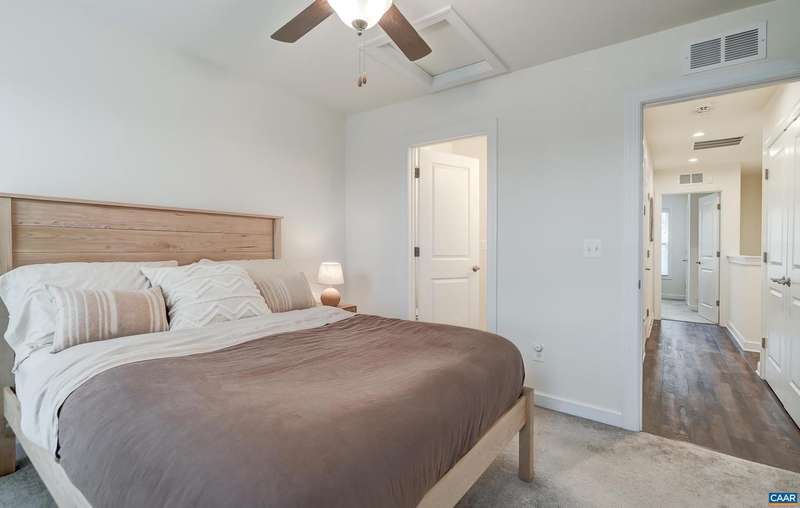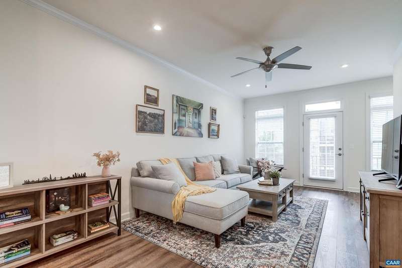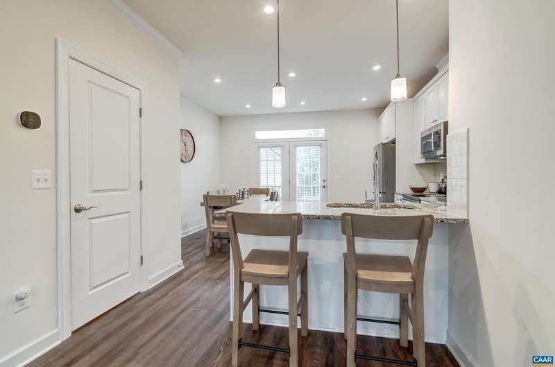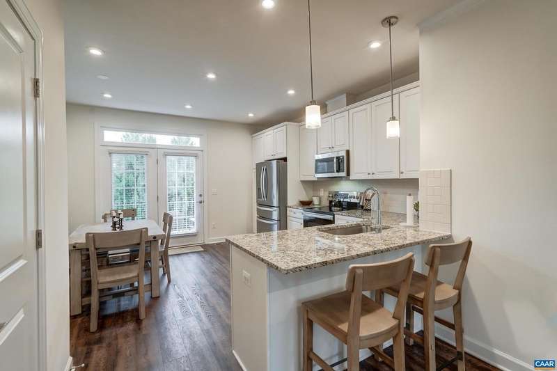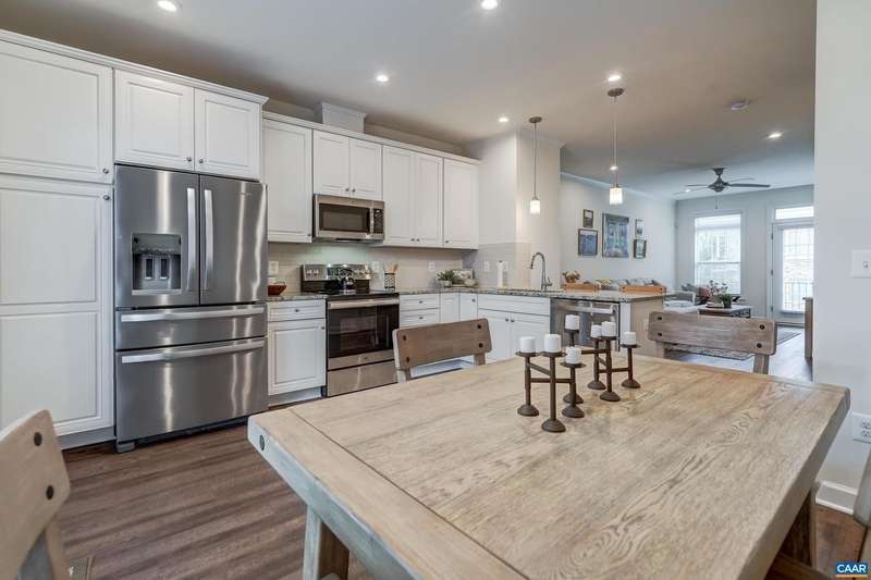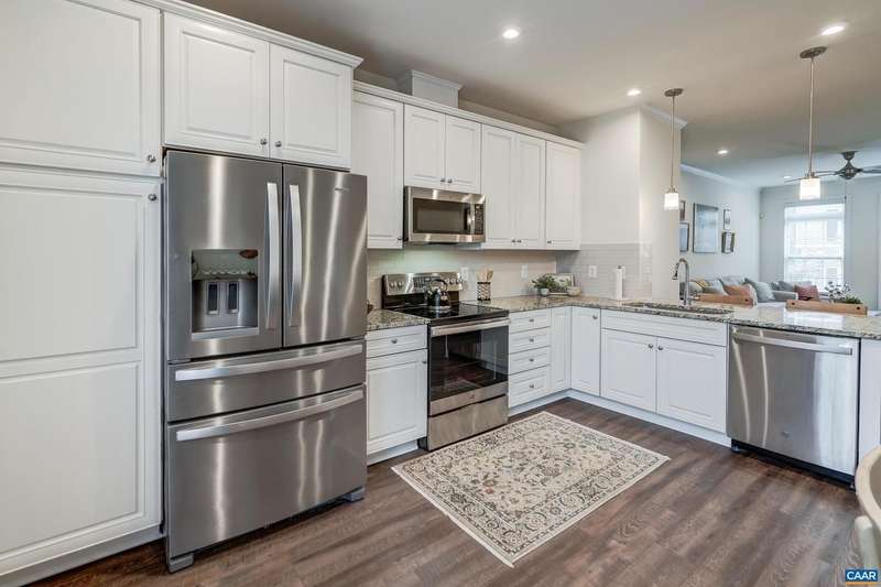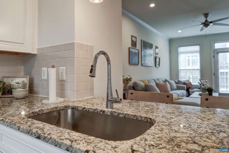 This stylish and well maintained 3 bedroom, 3 and a half bath town home in Old Trail is a must-see! Designer kitchen upgraded with solid wood cabinets, granite counter tops, subway-tile backsplash and stainless steel appliances. Open living room with ceiling fan flows into the kitchen, dining area, and private rear deck. Convenient half bath on main living area. 2 bedroom suites with private bathrooms and walk in closets, and laundry on top floor. Primary suite features a frameless glass shower with frameless glass doors. Third bedroom/home office and full bathroom on lower level make a great guest space! Two zone heating/ cooling with programmable Ecobee thermostat. Grill or dine on the composite rear deck or watch the sunset from the front balcony. Rear one-car garage with driveway space for an additional car. Outstanding location in Old Trail is walkable to shops and restaurants, and all three local schools!,Granite Counter,Wood Cabinets