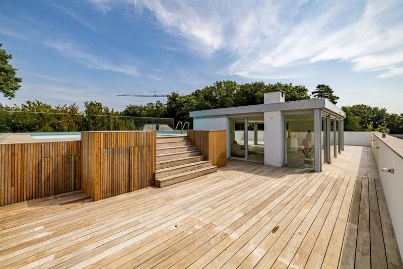 Dans une petite copropriété de seulement trois appartements, ce superbe penthouse entièrement rénové en profondeur en 2024 (tout est neuf) déploie environ 330 m² habitables et séduit par ses volumes baignés de lumière et ses finitions haut de gamme. De vastes réceptions s'ouvrent sur de généreuses terrasses totalisant environ 300 m², dont un spectaculaire rooftop de ± 200 m² orienté plein sud, doté d'une splendide piscine. Un bureau, une cuisine hyper équipée, une sublime suite parentale ainsi que trois autres chambres et quatre salles de bains complètent l'espace nuit. Un family-room, des caves et un garage pour deux voitures au rez-de-chaussée parachèvent ce bien rare. PEB : B- Avec son atmosphère exclusive, son jardin suspendu avec piscine et son emplacement de choix dans le quartier du Prince d'Orange, ce penthouse constitue une véritable adresse de prestige.