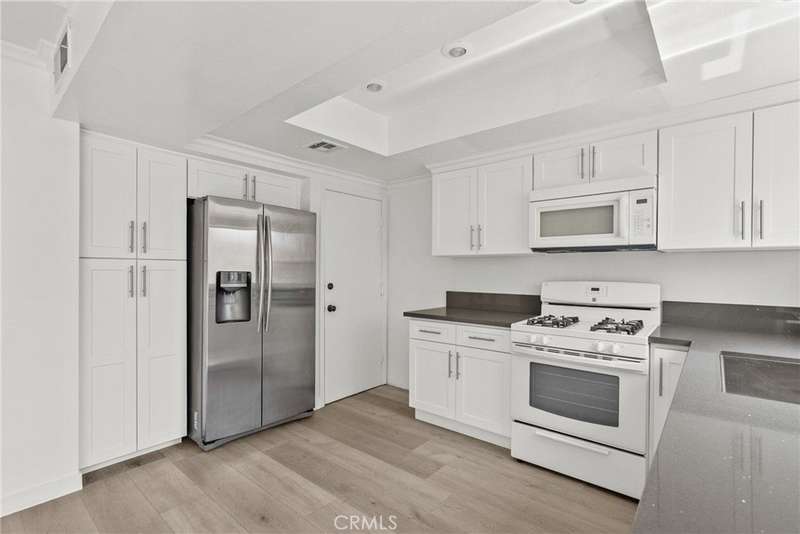 Stylish Updated 2 BR/ 2.5 BA Townhouse with approx. 1,095 sq.ft of living space. Privately tucked into a secure, gated complex in the heart of Reseda, this tri-level home features a remodeled kitchen with quartz counters and sleek cabinetry, laminated wood floors throughout, and a cozy fireplace in the living area. Master suite with private bathroom and high vaulted ceilings. Updated Bathrooms, Central A/C & heat. The attached 2-car garage provides secure parking and laundry area.