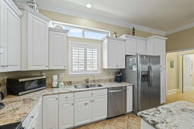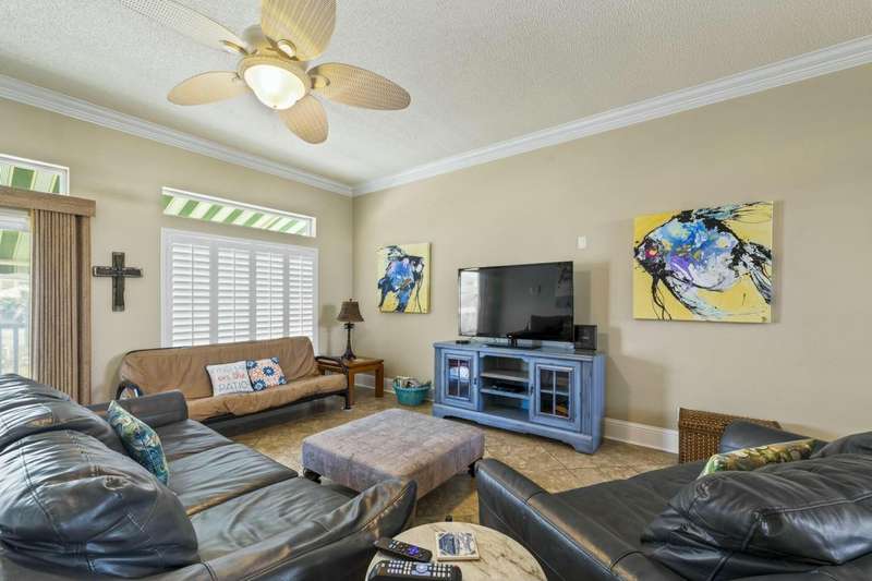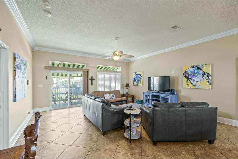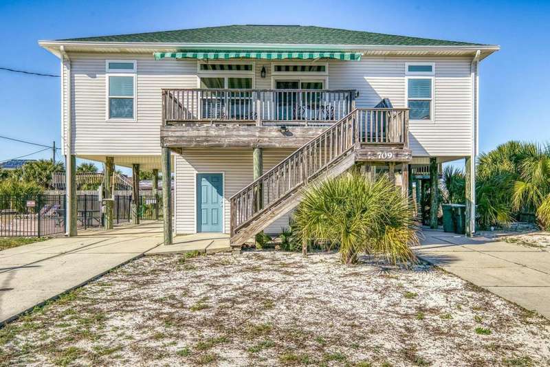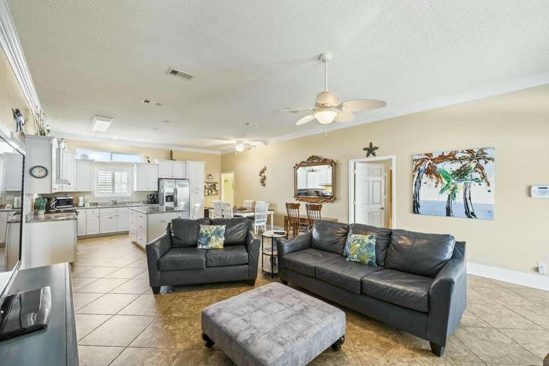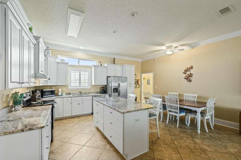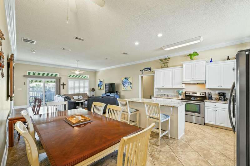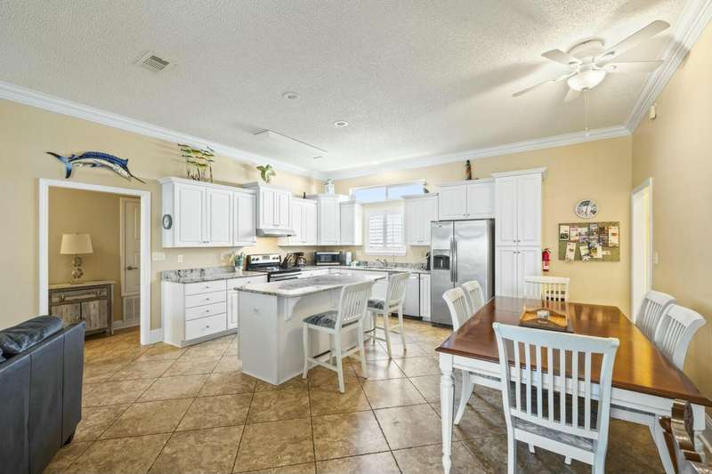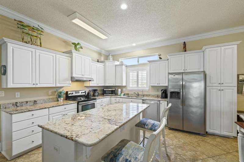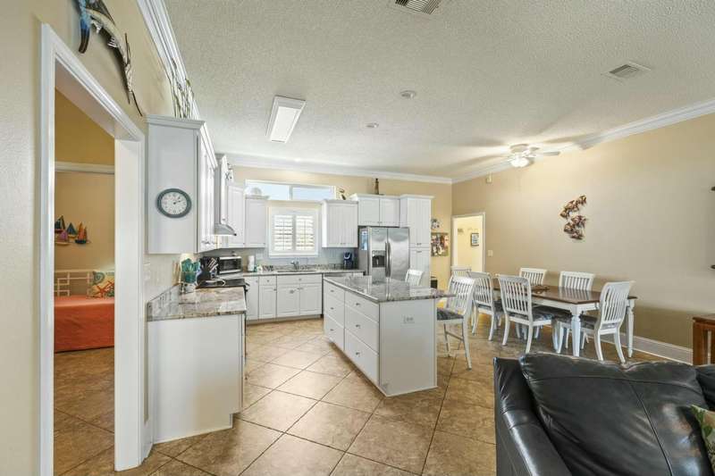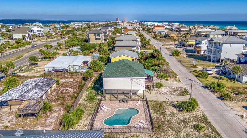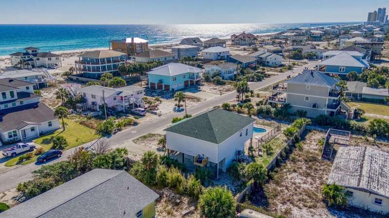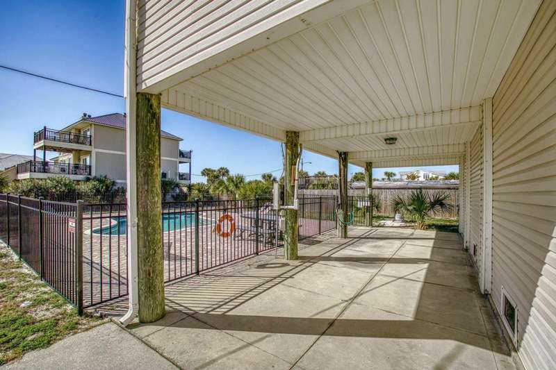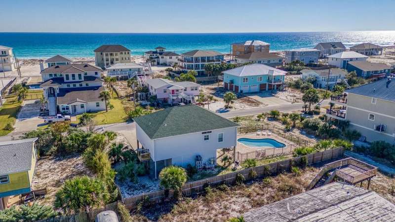 Escape to the Beach where your next Home Awaits! The spacious & light-filled open-concept living area seamlessly connects the kitchen, dining, & living spaces, creating a warm and inviting atmosphere for gatherings with family & friends. There are high ceilings, crown molding and tile floors throughout this split floor plan boasting 3 large bedrooms & 2 full baths, not to mention the downstairs game room & additional storage. This home is completely furnished & ready for you to enjoy or rent & sleeps 11 as furnished. The heart of this home is a large kitchen with an island, granite counters & tons of cabinets. Whether you're preparing a casual breakfast or hosting a lavish dinner party, this kitchen is equipped to handle it all. Dive into your own private saltwater - heated - in-ground- pool, perfect for cooling off on warm days or enjoying a refreshing evening swim. The spacious pool deck offers ample room for lounging & entertaining, creating your own personal paradise. This property is an oasis of tranquility just steps from the pristine sparkling Gulf waters. Enjoy effortless access - a 1 minute away - with your beach cart on the walkway to the beach next to the house. Spend your days swimming, sunbathing, shelling, or simply strolling along the Emerald Green Waters. And when you return home - rinse off with the convenient outdoor shower. The soothing sounds of the waves will be your daily soundtrack. Embrace the coastal lifestyle with a covered patio & pool, or when we get the occasional shower, the Playroom offers all sorts of games like ping pong, Pop-a-Shot & Foosball. The Playroom & covered patio are also great for al fresco dining or simply relaxing & enjoying the gentle sea breeze in the shade. Upstairs you can watch the water on the front deck where there is a remote awning for those hot & sunny afternoons. This home offers convenient access to all of the restaurants, shops & activities the Beach and Boardwalk has to offer! AC 2024, Roof 2023, Pool & Pool Heater 2021.